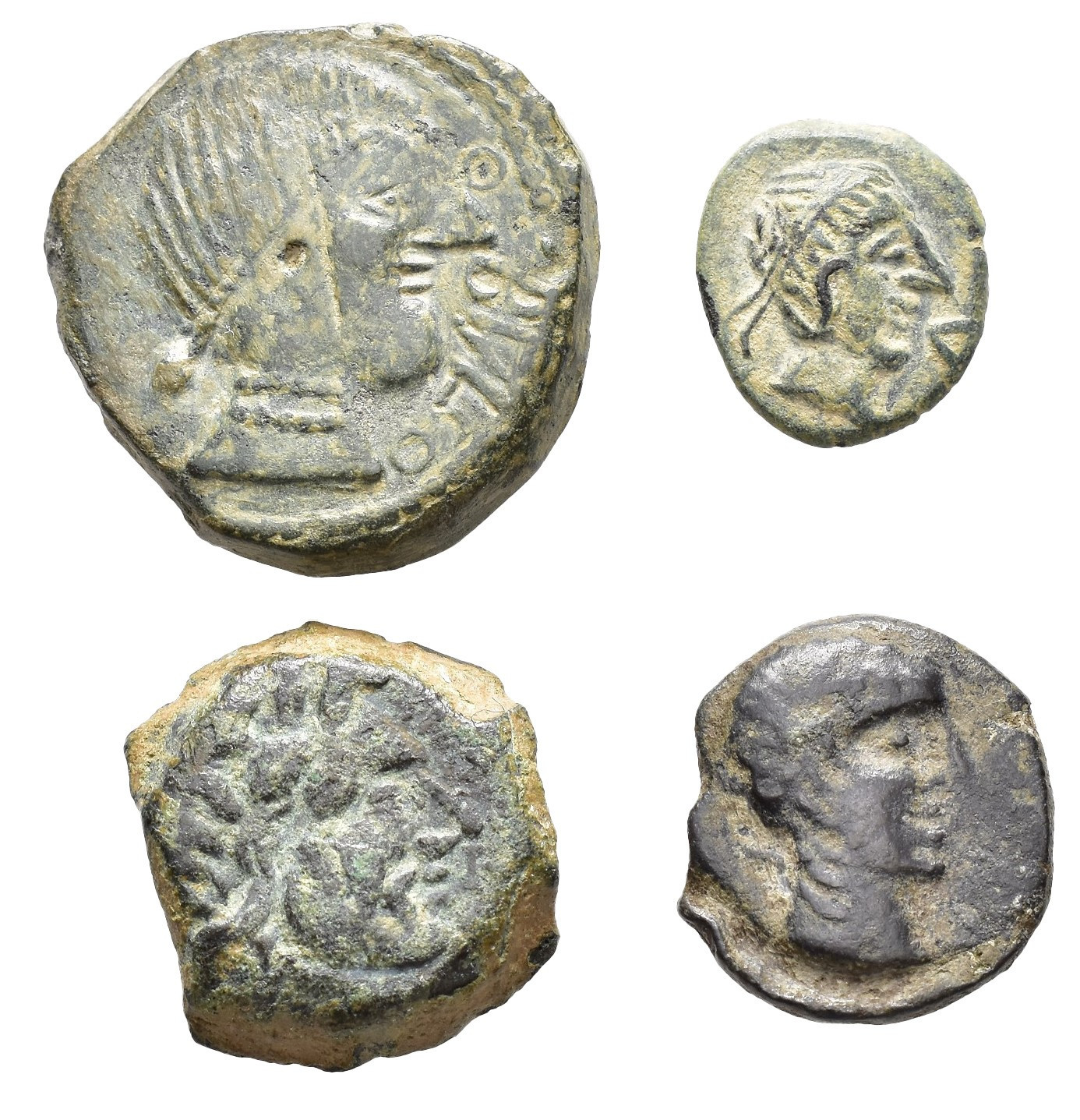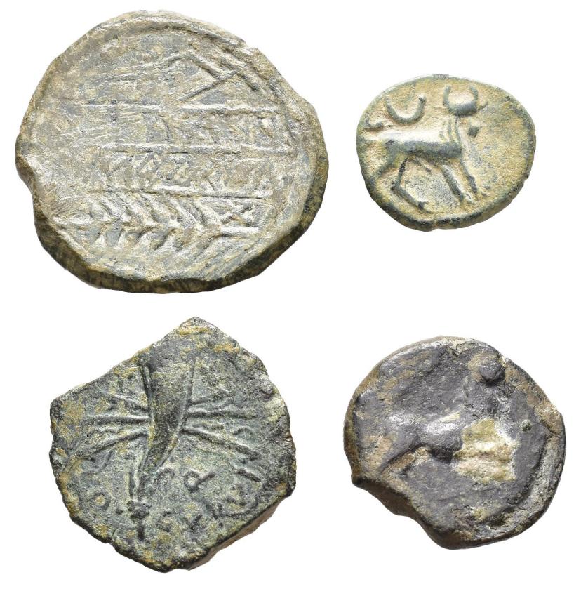 HISPANIA ANTIGUA. Lote de 4 piezas: Carteia, Castulo (2) y Obulco, 3 semis y 1 as. ACIP-2156, 2161, 2196 y 2550. CC-3495, 2676, 2695 y 2792, mismos ejemplares. MBC/MBC+.