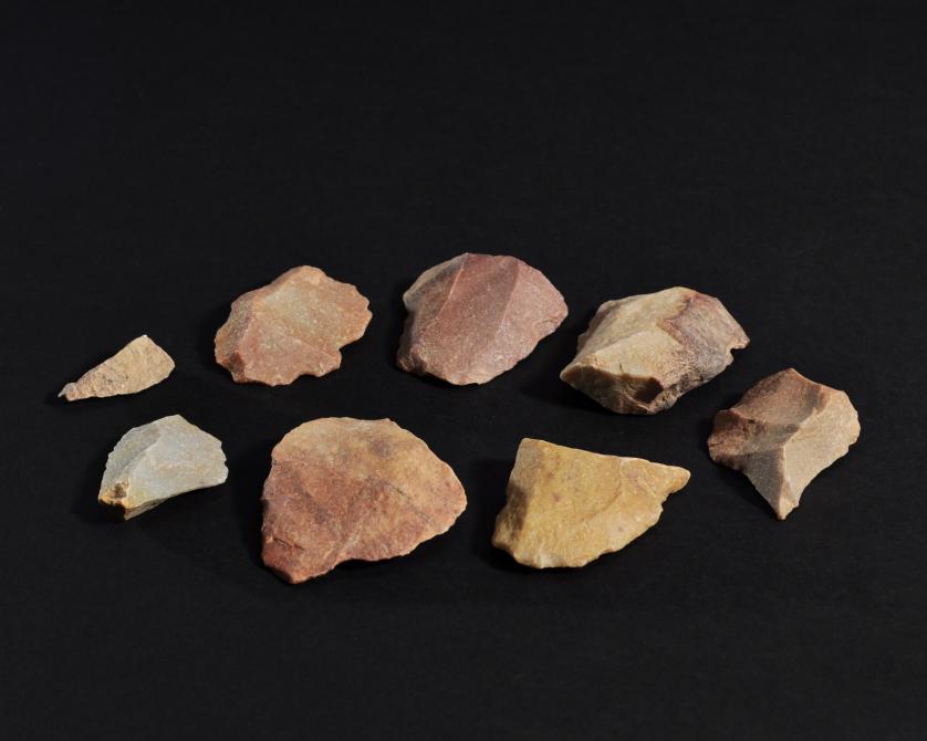 ARQUEOLOGÍA. PREHISTORIA. Paleolítico Medio, Musteriense. Lote de 8 útiles líticos (ca. 60.000 a.C.). Cuarcita. Longitud de 3 a 6 cm.