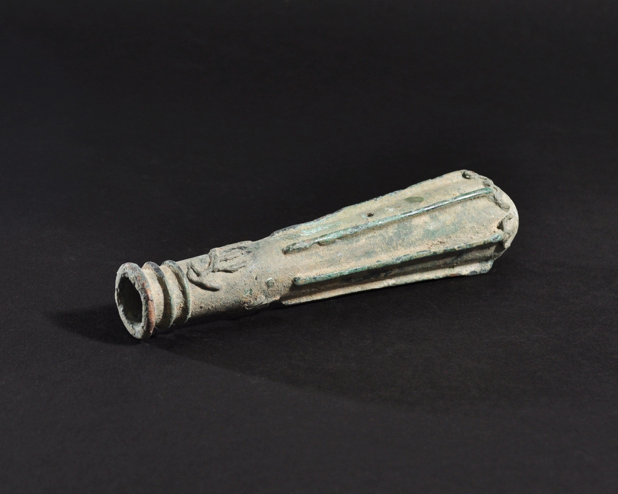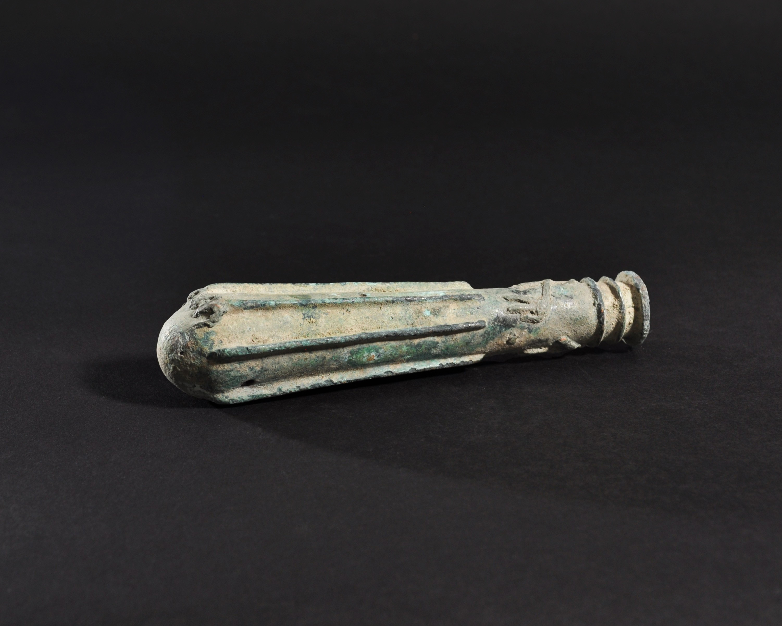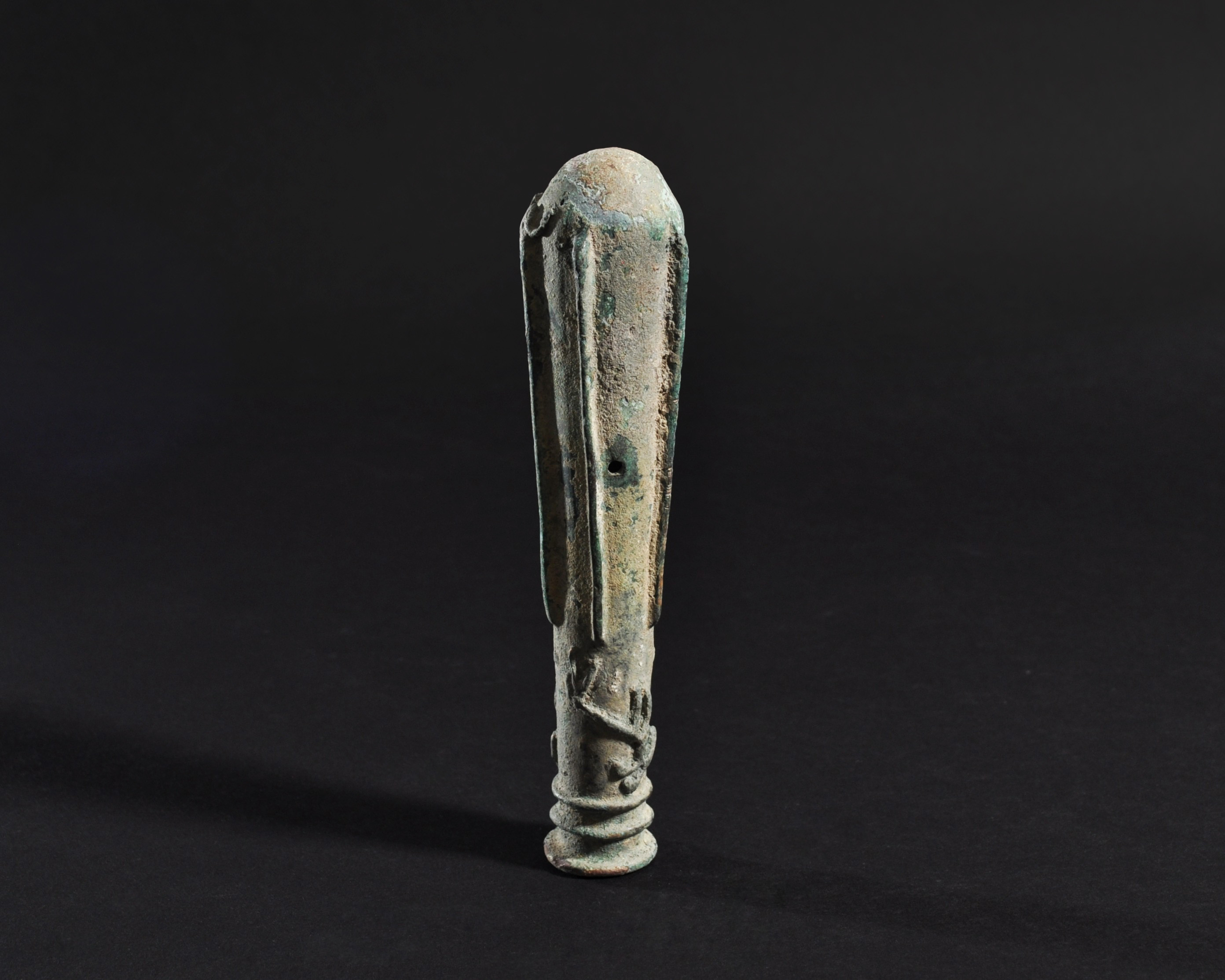 ARQUEOLOGÍA. PRÓXIMO ORIENTE. Luristán. Maza con decoración estriada (ss. IX-VI a.C.). Bronce. Longitud 16 cm.