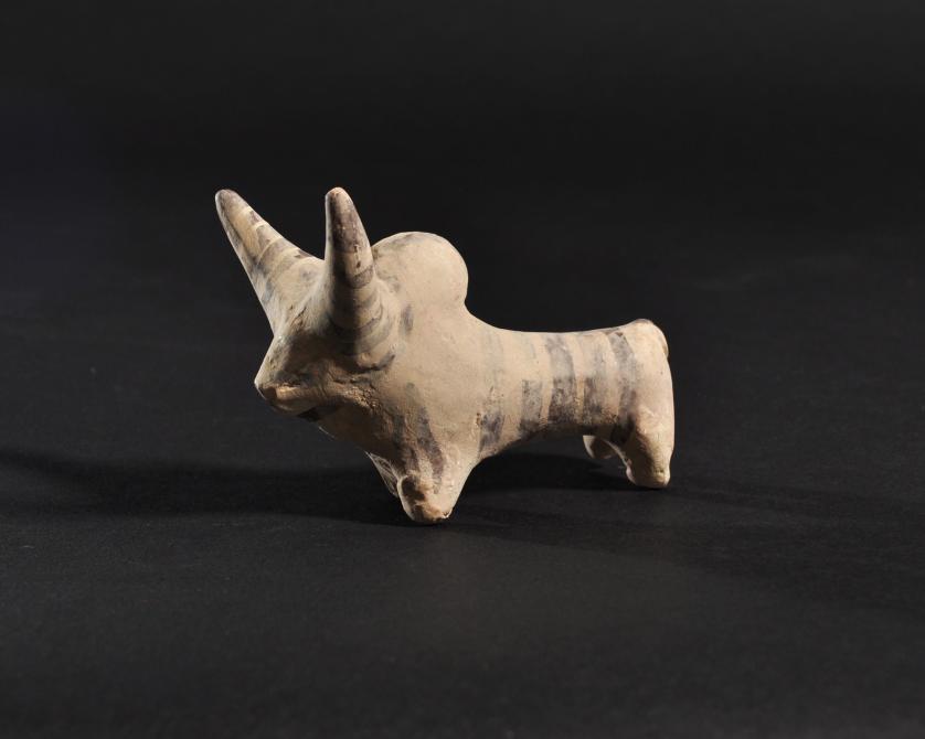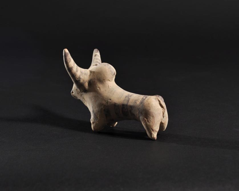 ARQUEOLOGÍA. MEDIO ORIENTE. Valle del Indo. Cultura Mehrgar. Figura de cebú (ca. 2000 a.C.). Cerámica. Longitud 8,7 cm. Adjunta certificado de termoluminiscencia QED Laboratoire.
