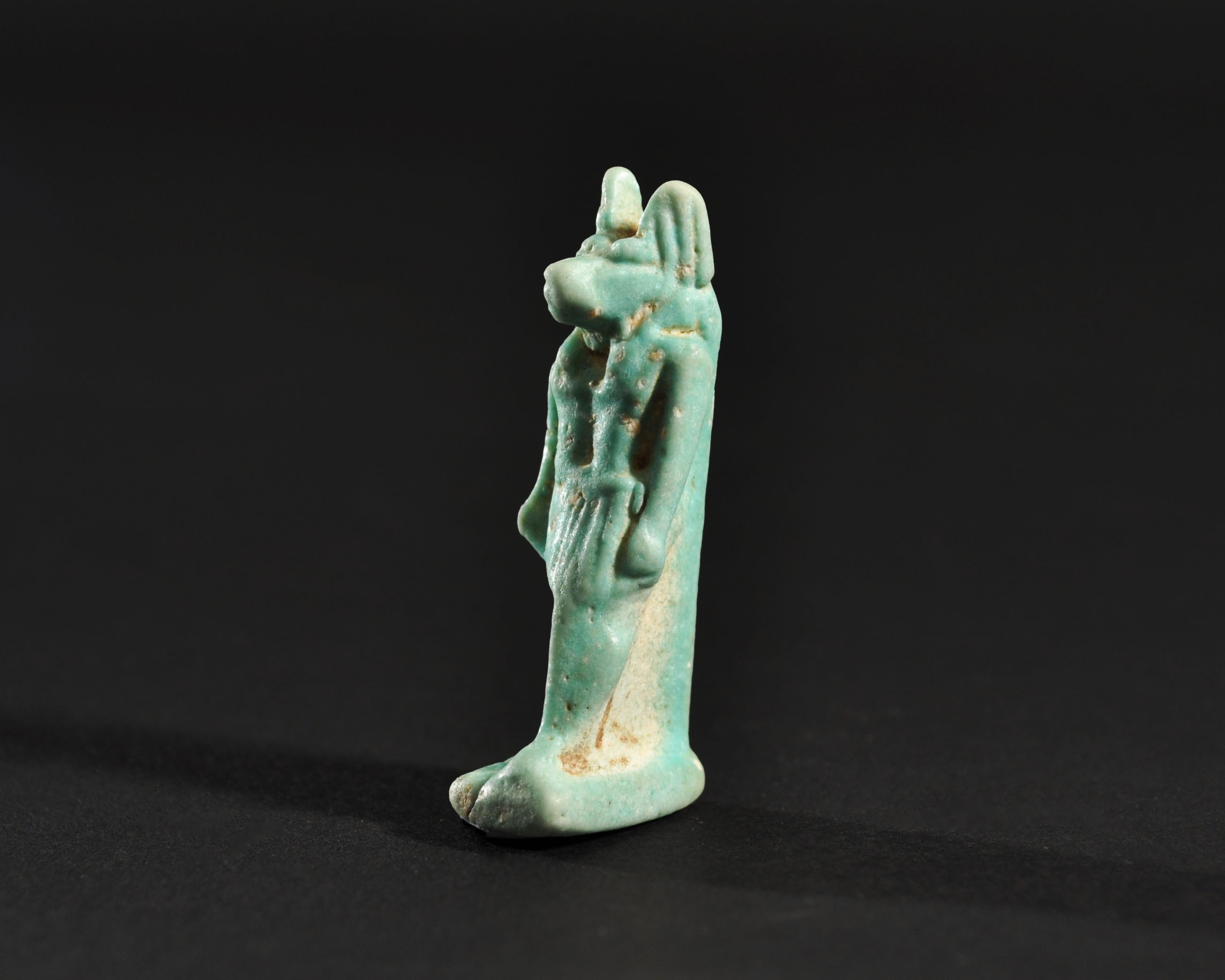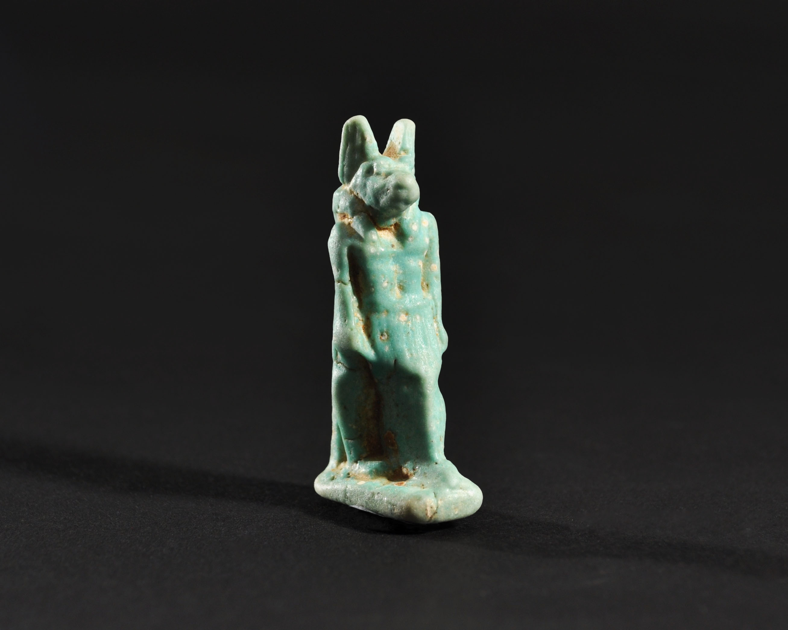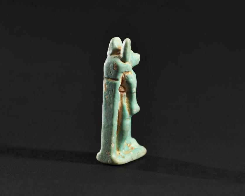 ARQUEOLOGÍA. EGIPTO. Baja Época. Amuleto de Anubis (664-332 a.C.). Fayenza. Altura 4,4 cm.