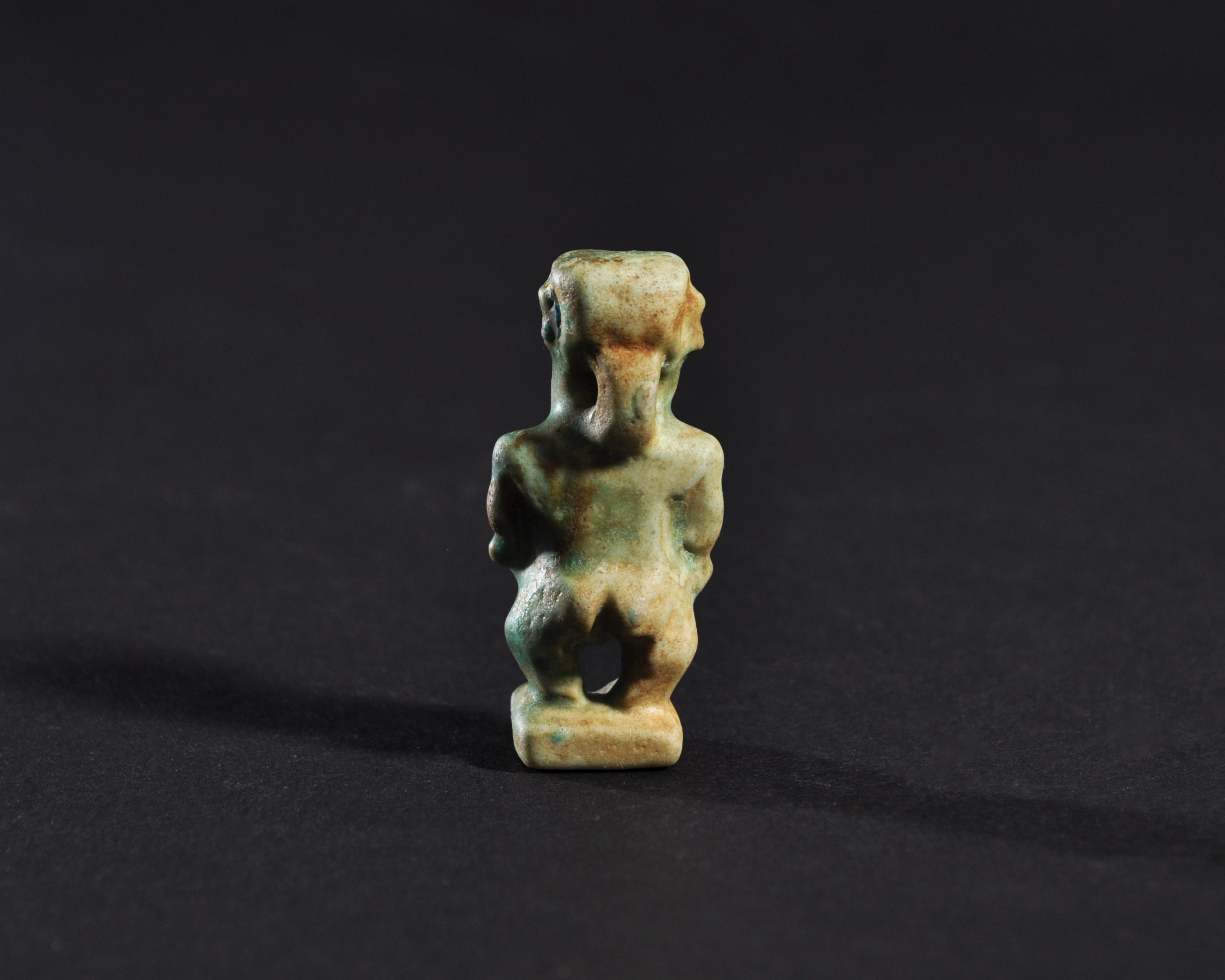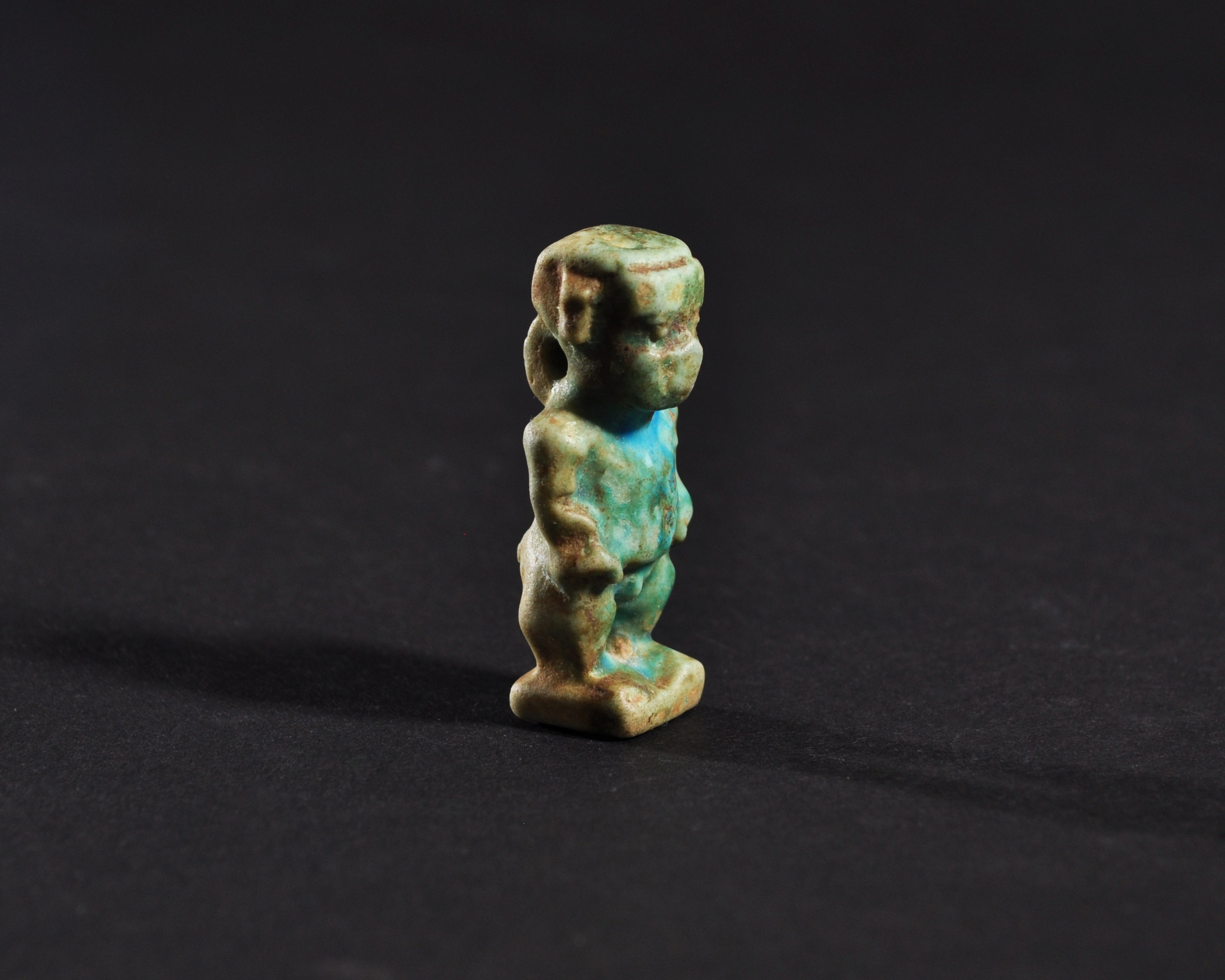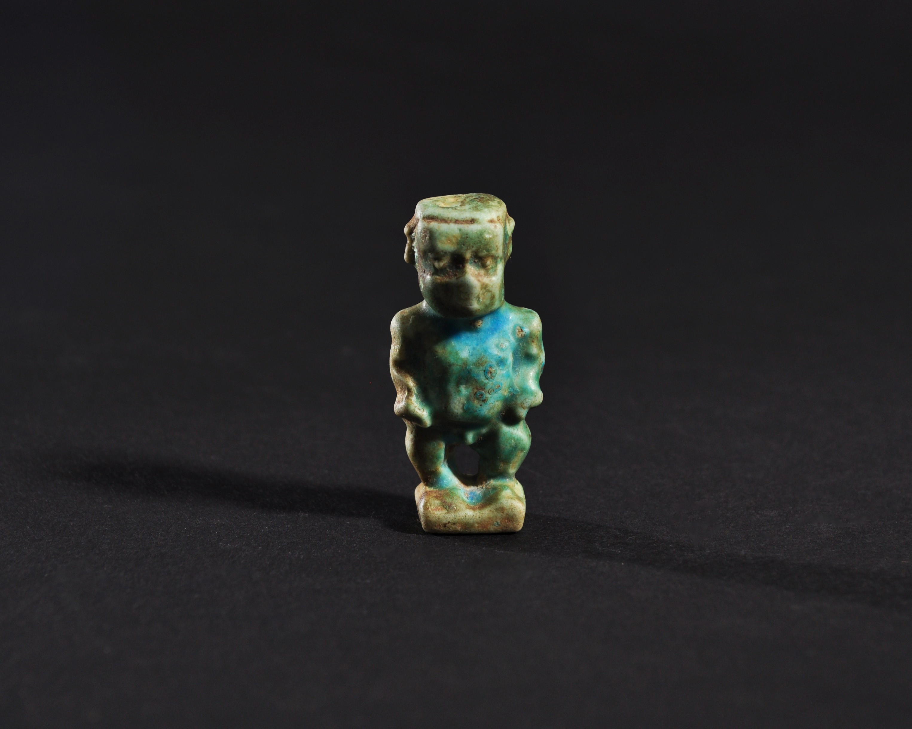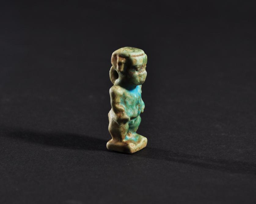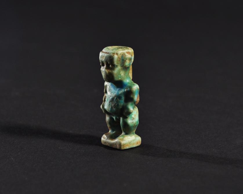 ARQUEOLOGÍA. EGIPTO. Baja Época. Amuleto de Pateco (664-332 a.C.). Fayenza. Altura 4,5 cm.