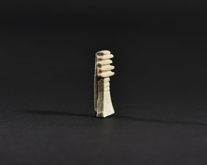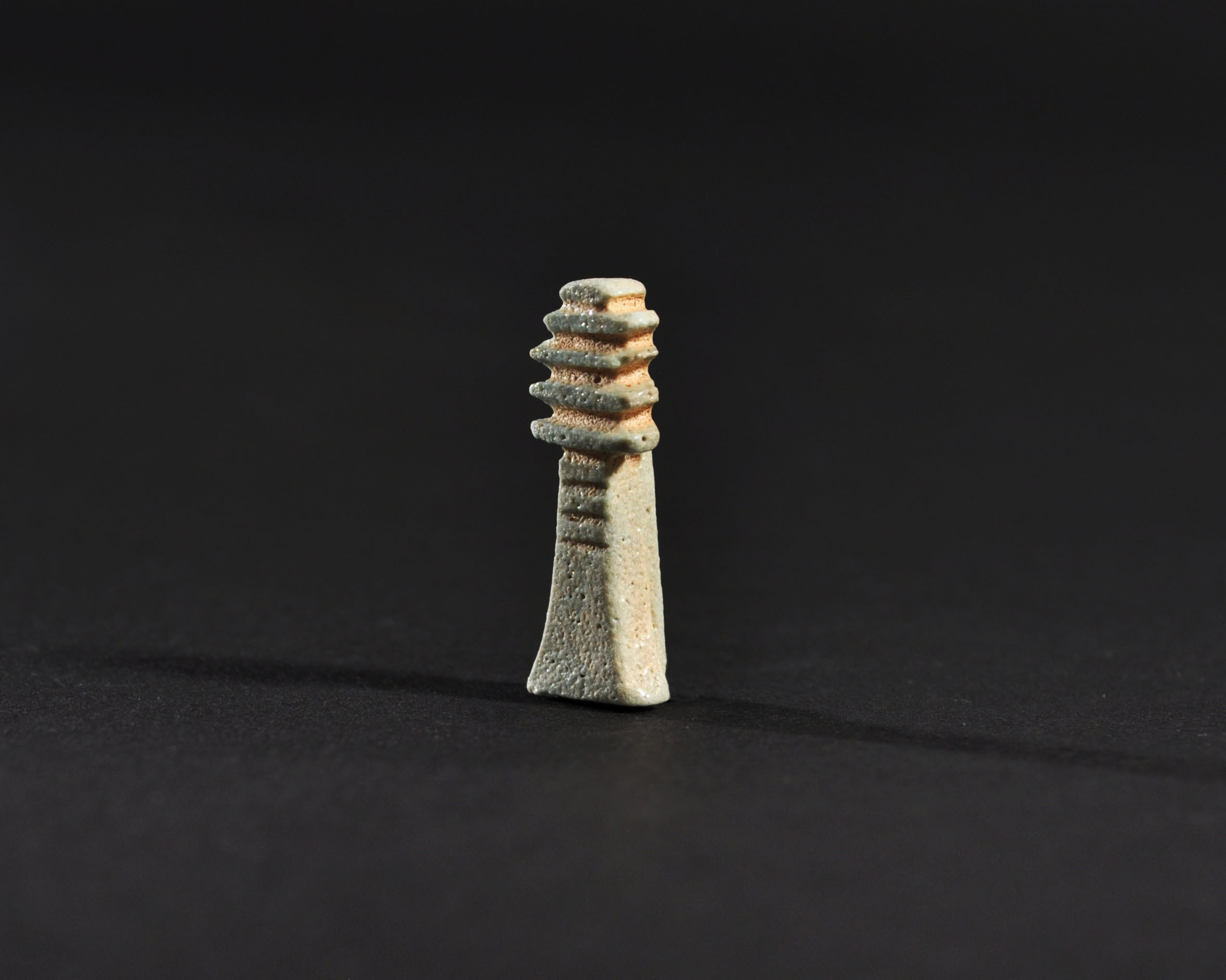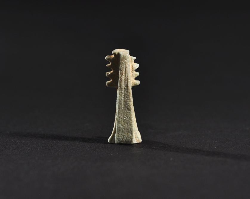 ARQUEOLOGÍA. EGIPTO. Baja Época. Amuleto de pilar Dyed (664-332 a.C.). Fayenza. Altura 2,7 cm.