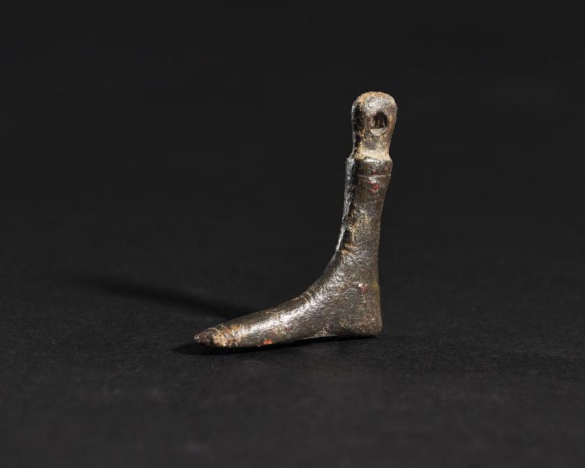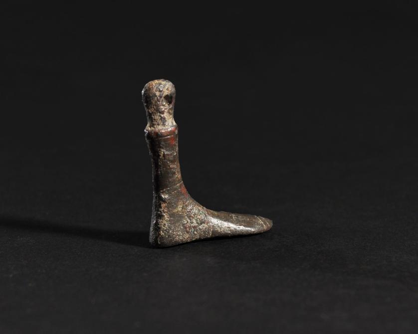 ARQUEOLOGÍA. HISPANIA ANTIGUA. Cultura celtíbera. Colgante en forma de pie con decoración de círculos concéntricos en su base (ss. IV-II a.C.). Bronce. Altura 3,3 cm.