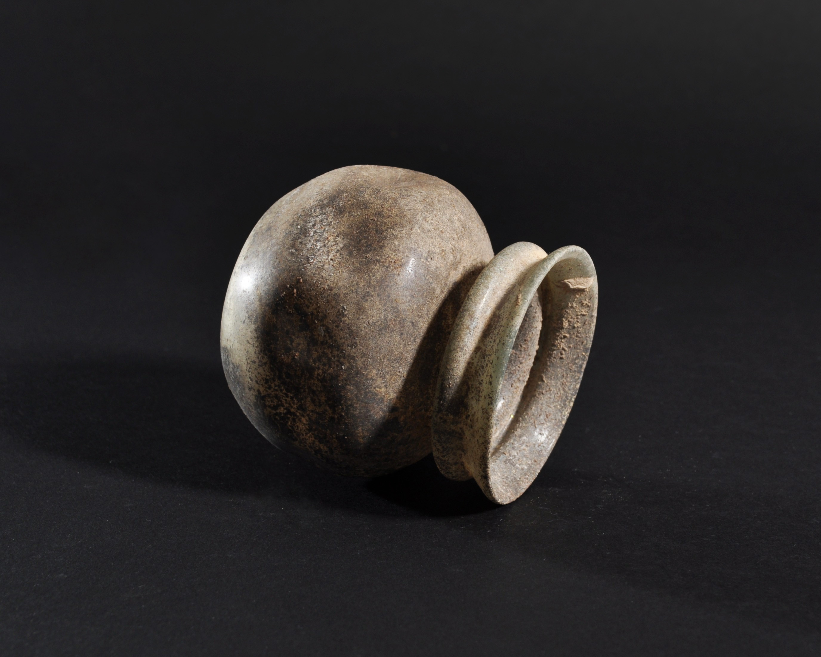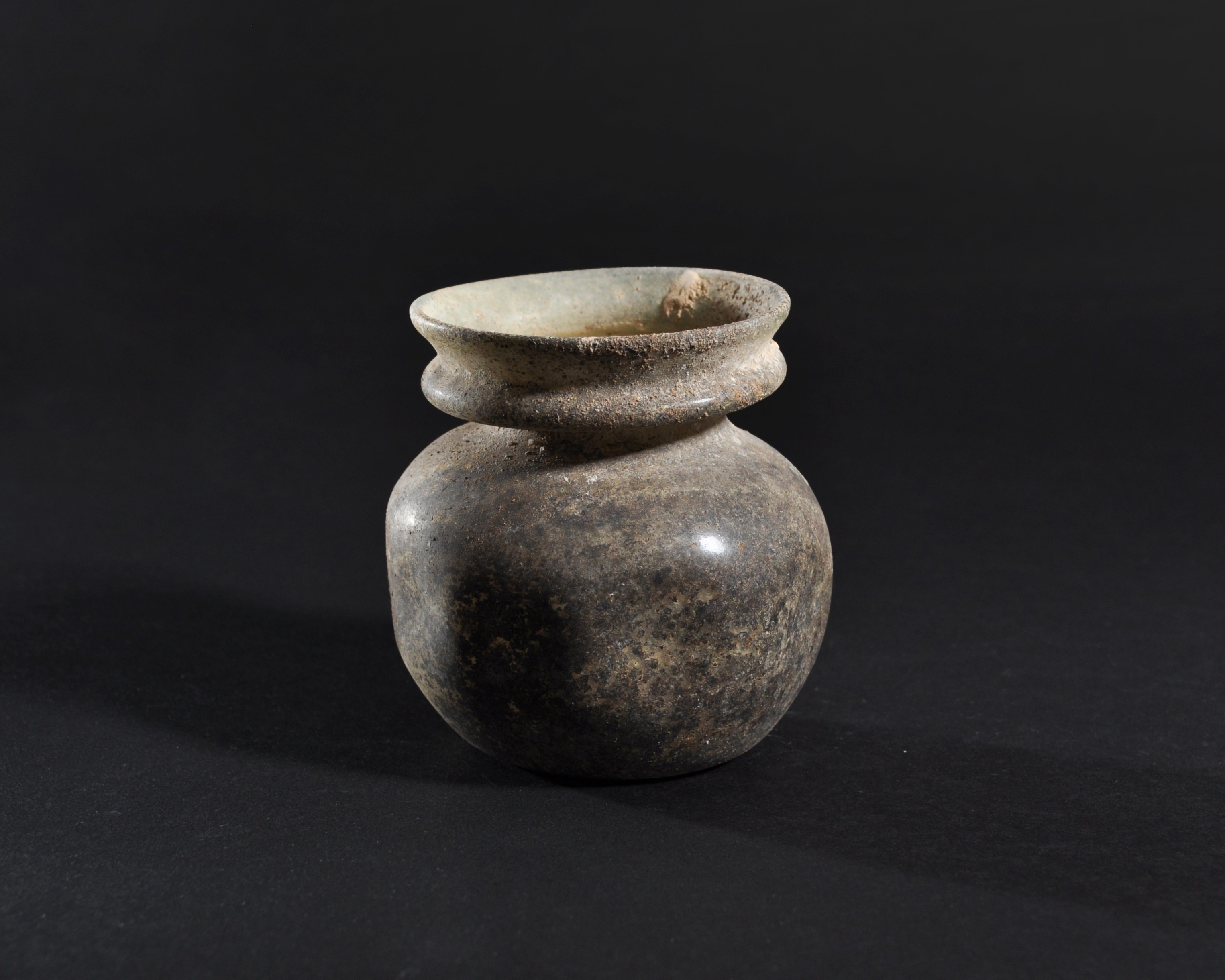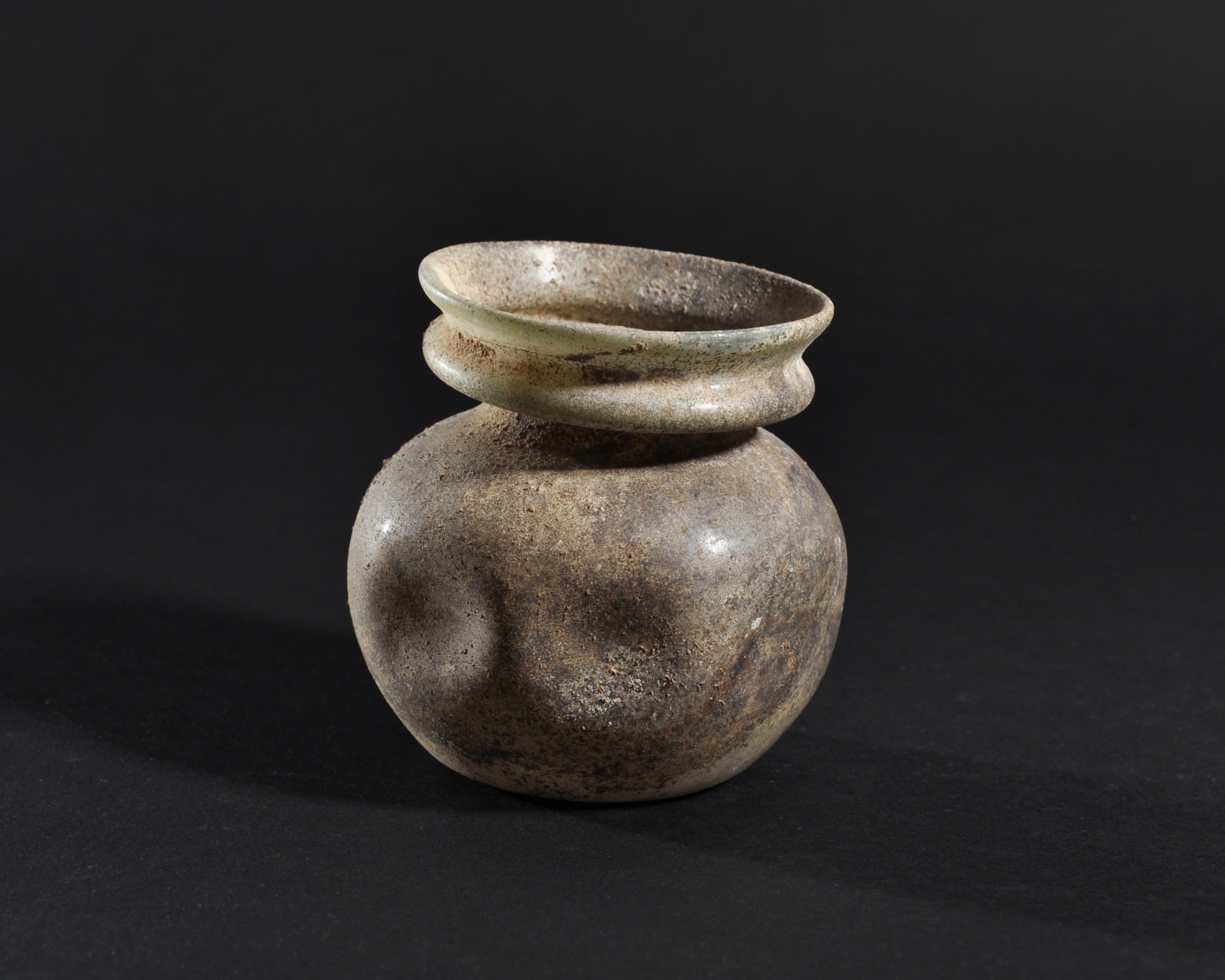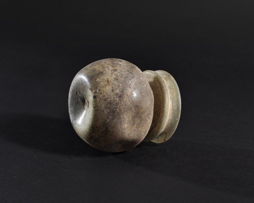 ARQUEOLOGÍA. ROMA. Vaso decorado con depresiones (ss. I-IV d.C.). Vidrio. Altura 8,4 cm.