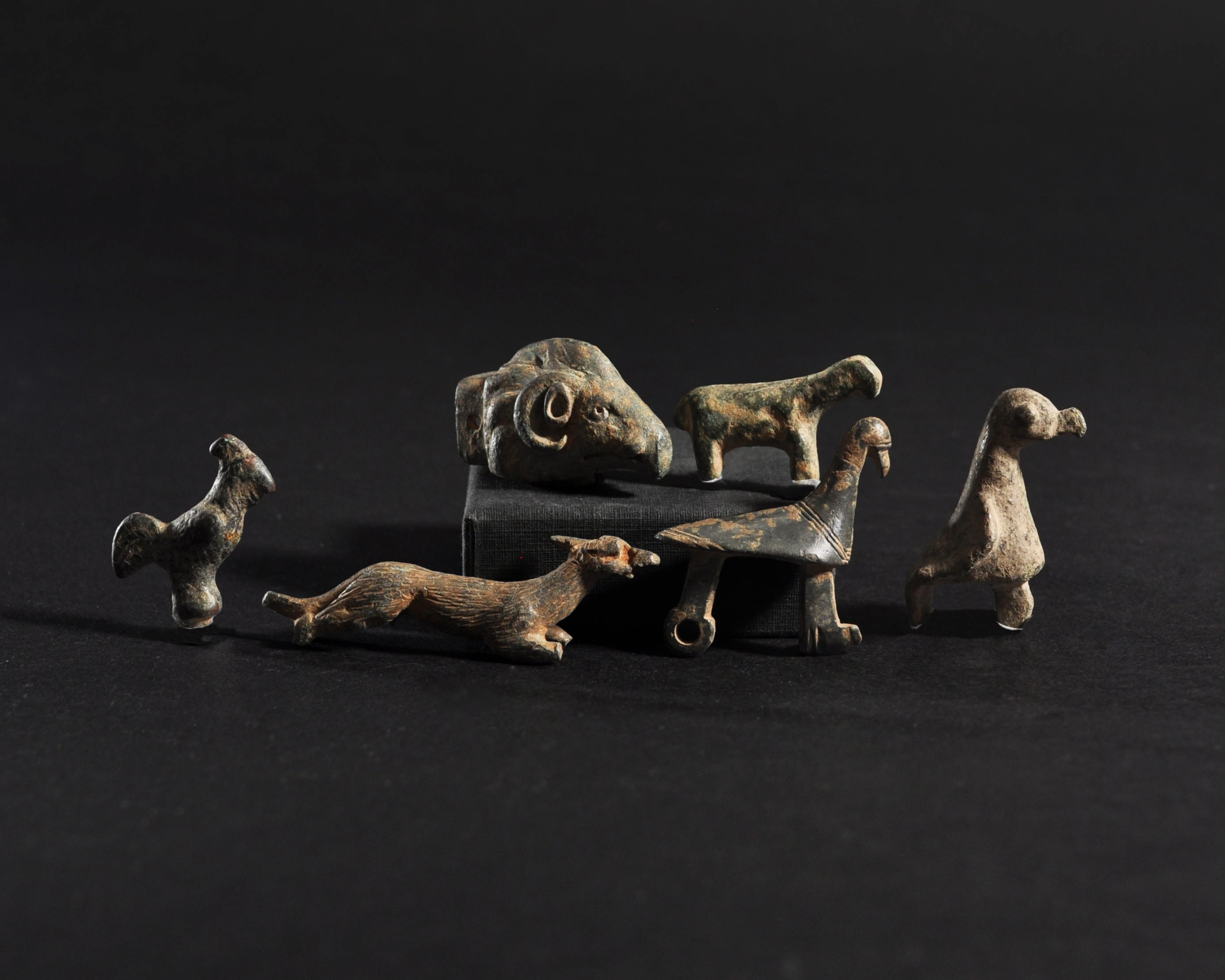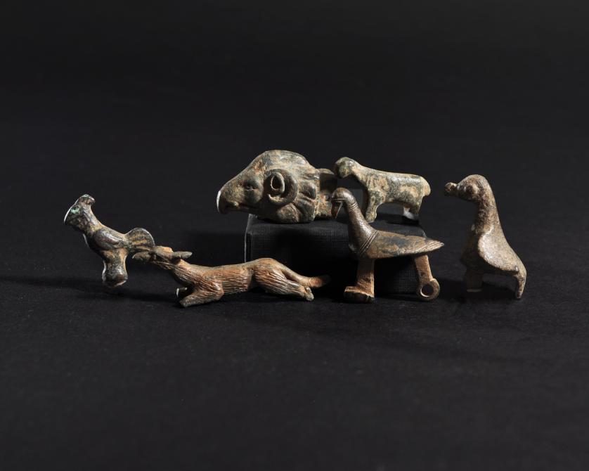 ARQUEOLOGÍA. ROMA. Lote de 6 figuras zoomorfas (ss. I-IV d.C.). Bronce. Longitud de 2,9 a 5,5 cm.