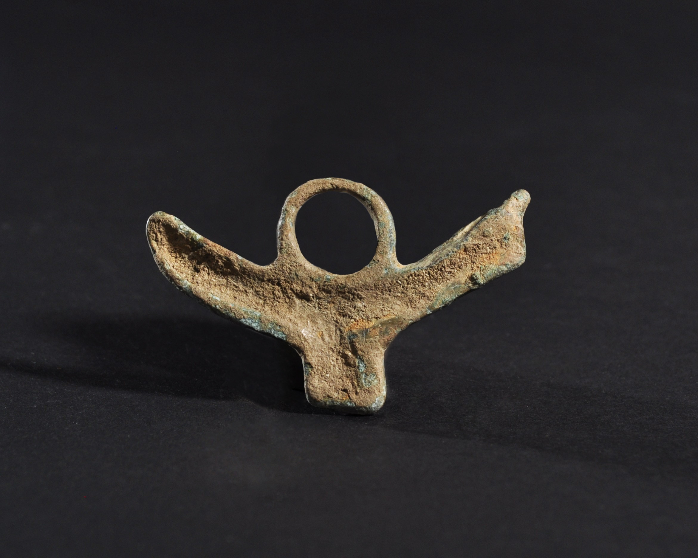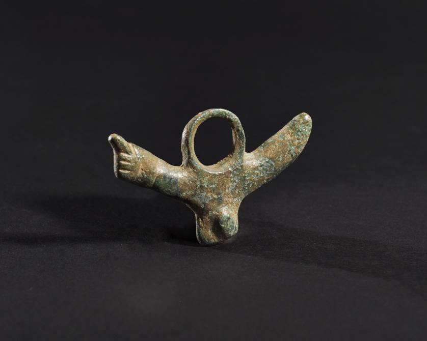 ARQUEOLOGÍA. ROMA. Amuleto fálico triple (ss. I-IV d.C.). Bronce. Longitud 6,7 cm.