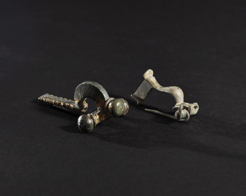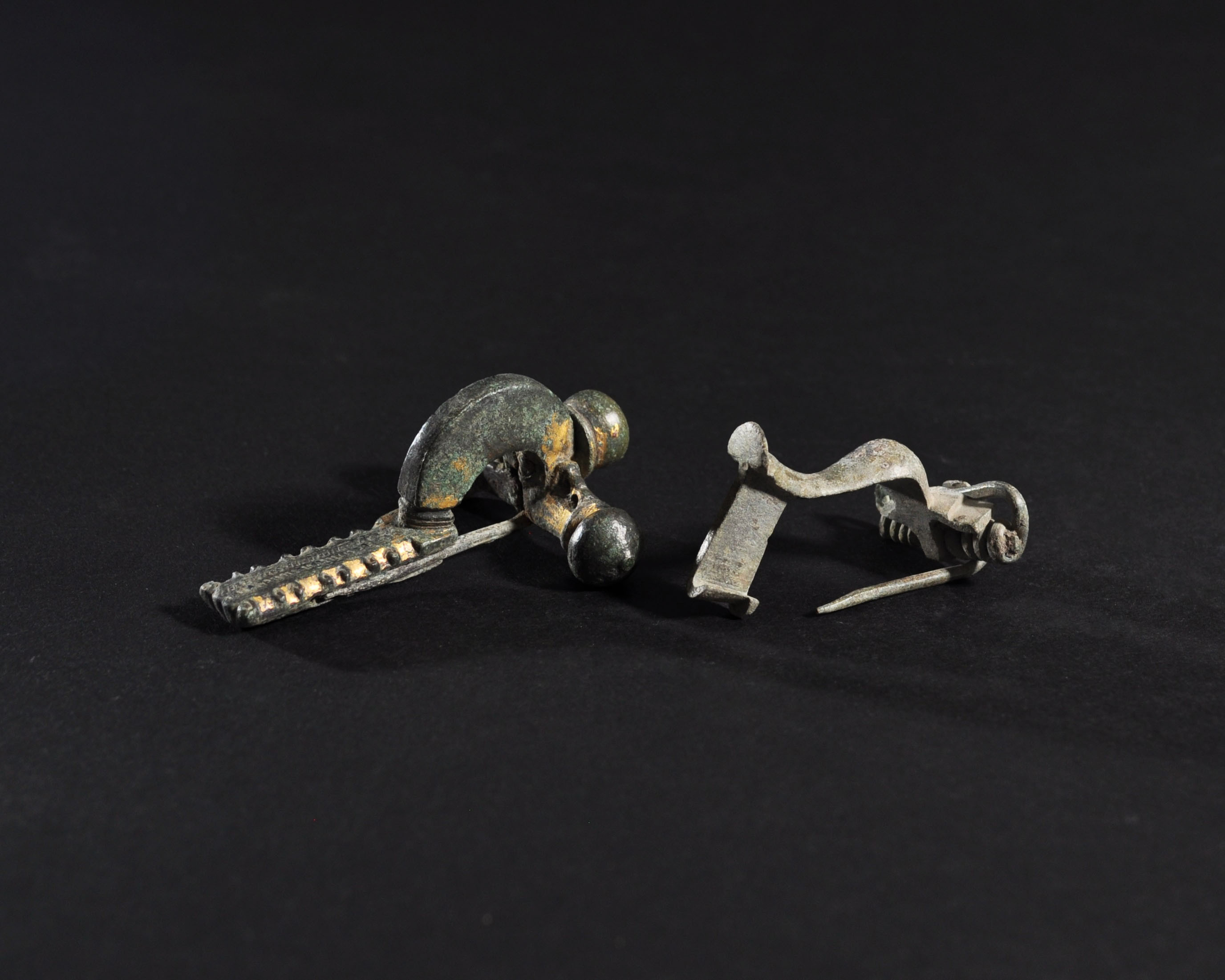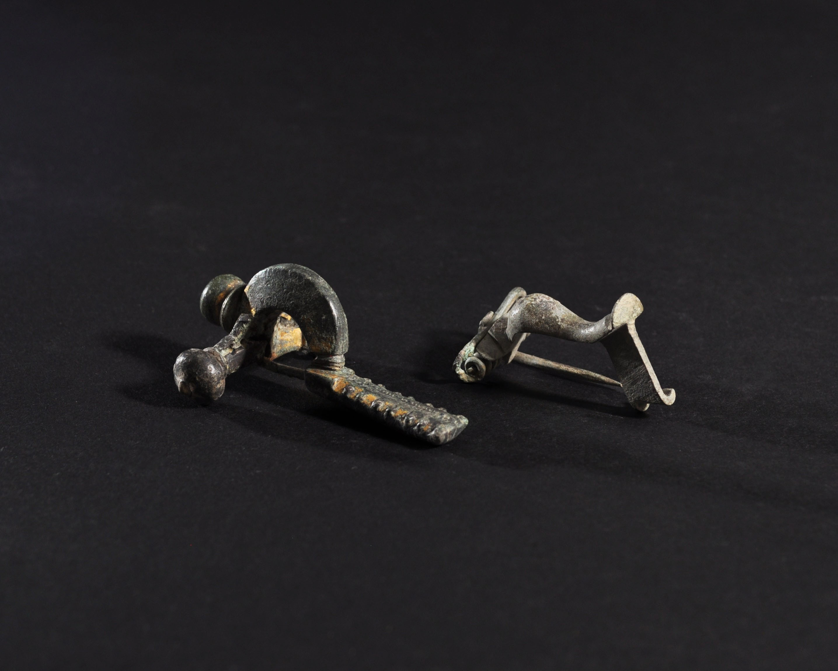 ARQUEOLOGÍA. ROMA. Lote de 2 fíbulas (ss. I-IV d.C.). Bronce. Longitud de 4,3 a 6,3 cm.