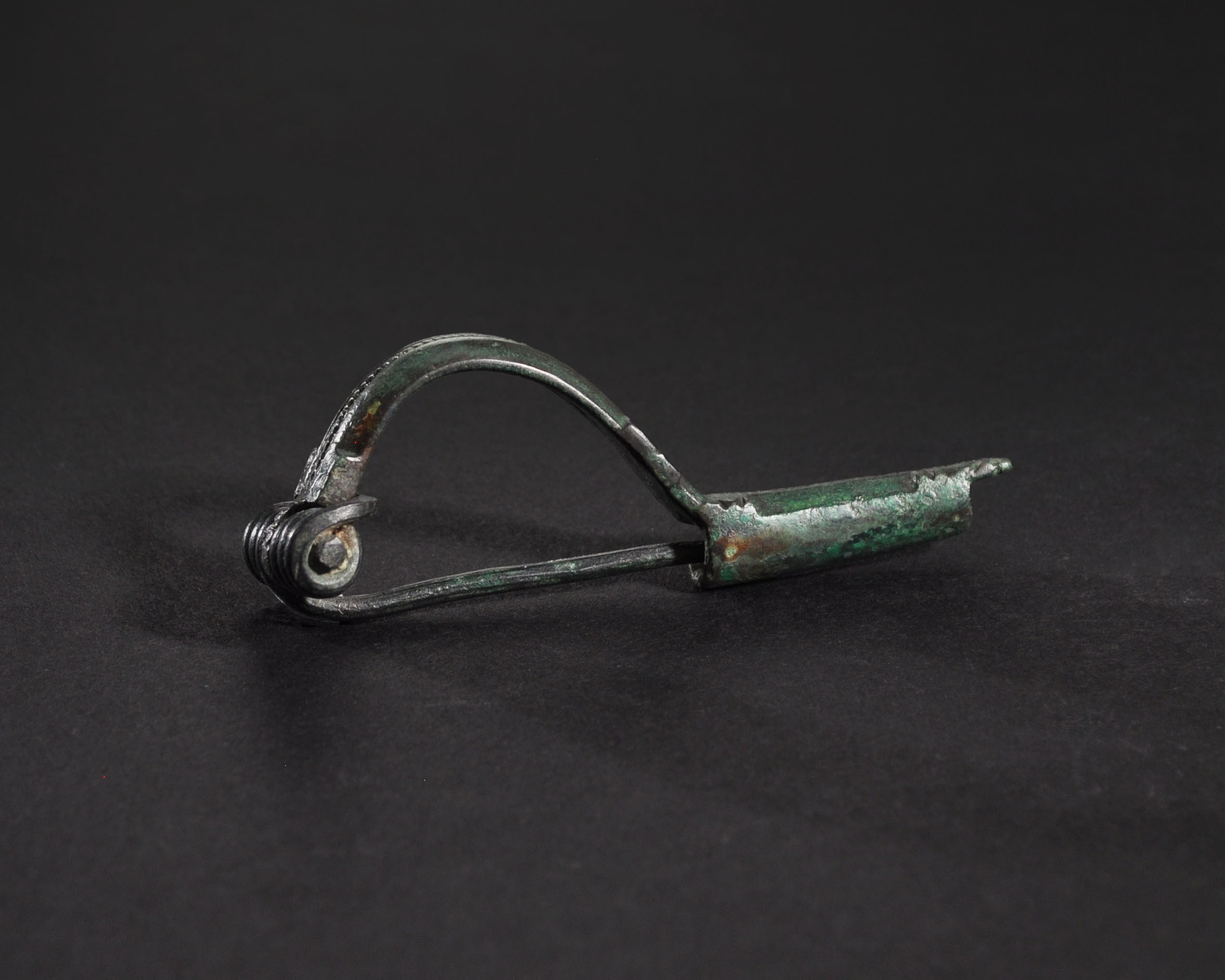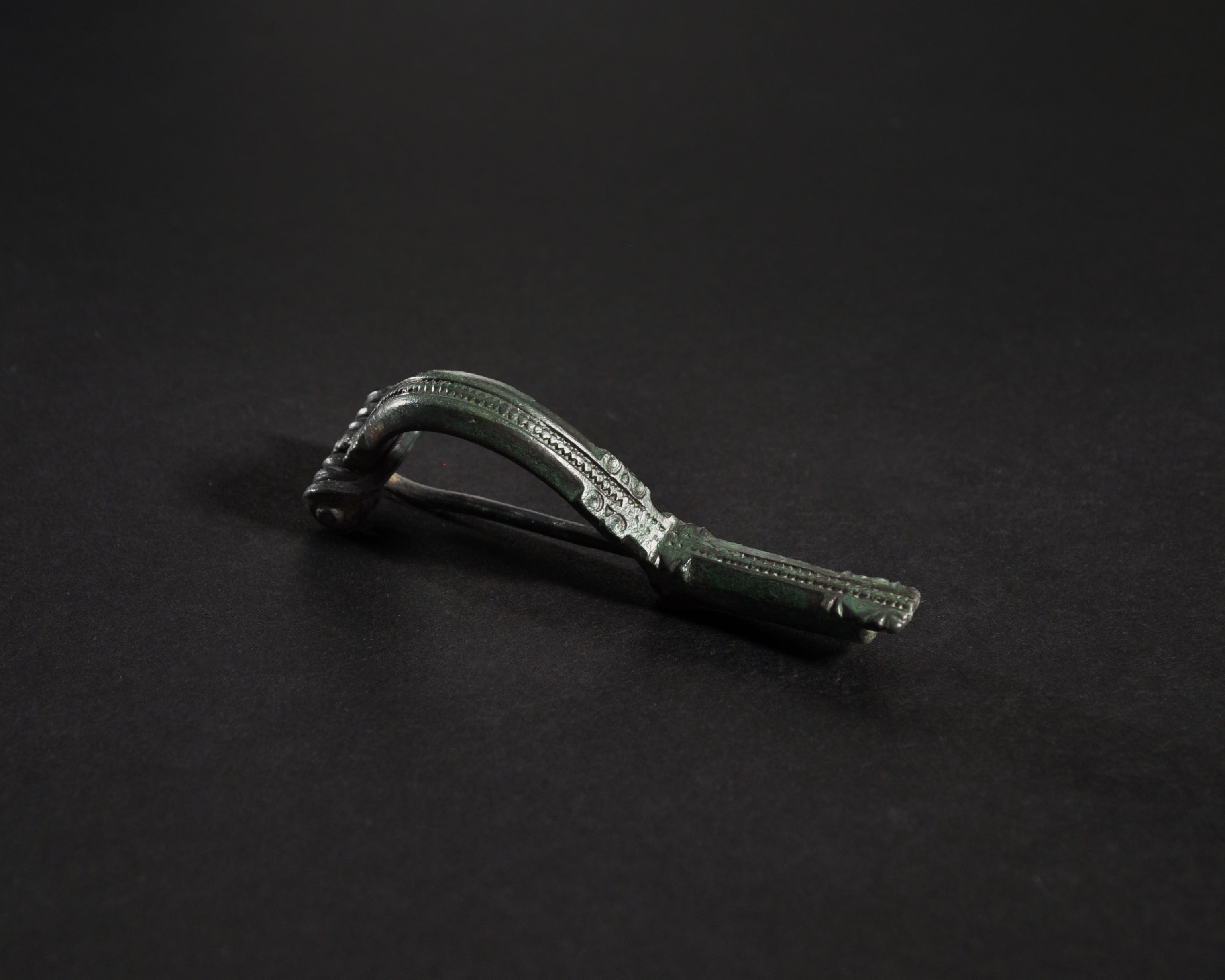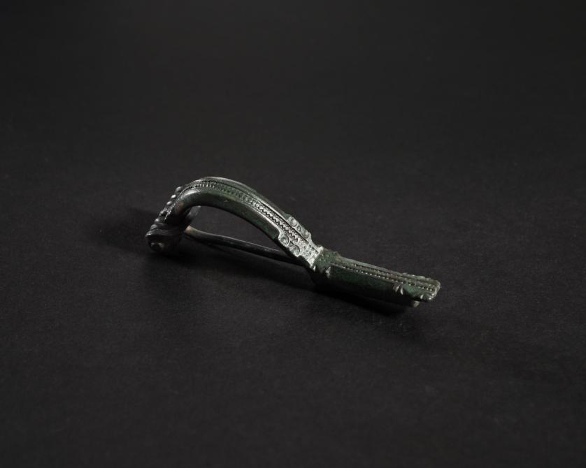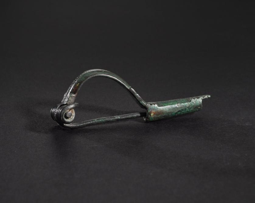 ARQUEOLOGÍA. ROMA. Fíbula de arco (siglo IV d.C.). Bronce. Longitud 7,3 cm.