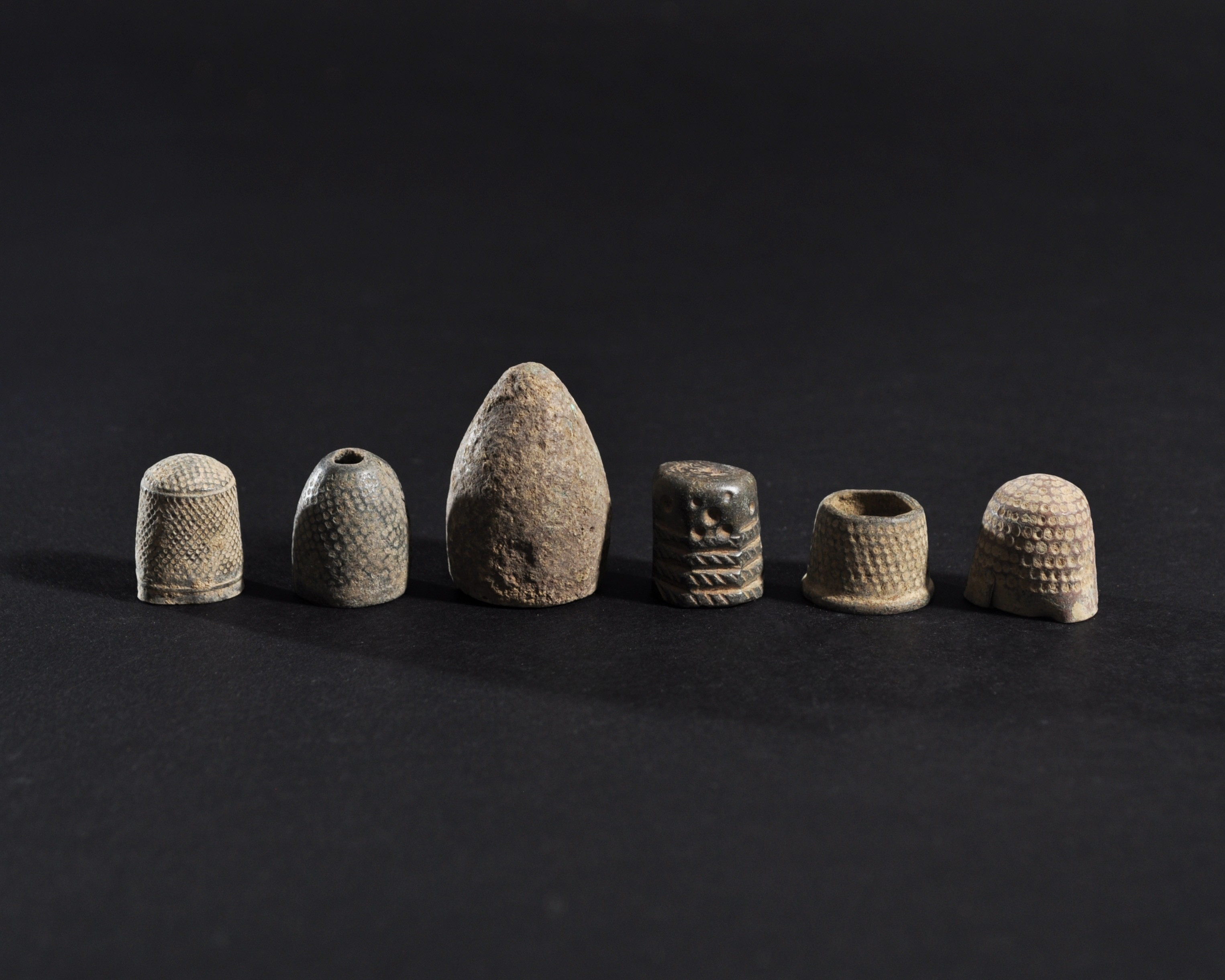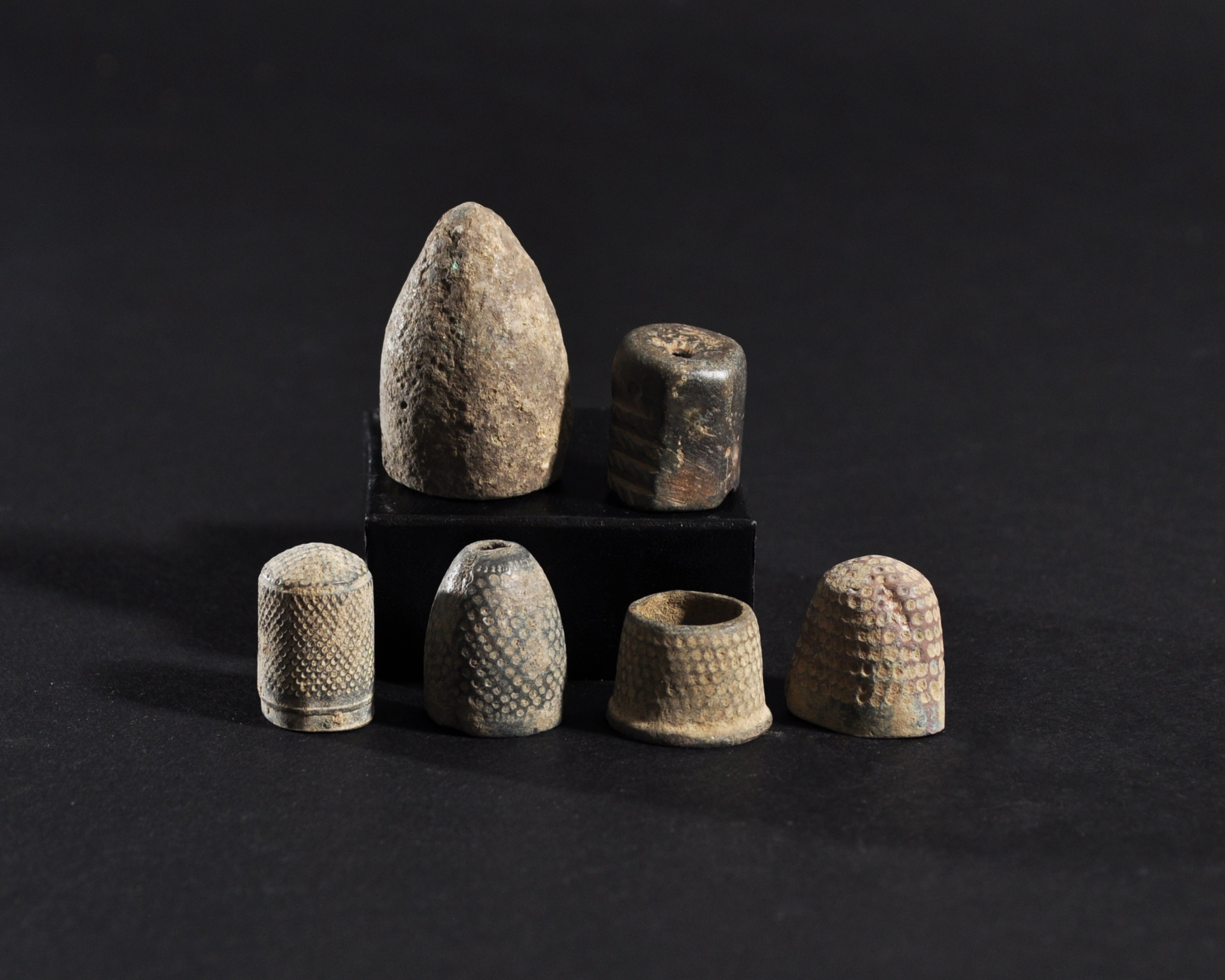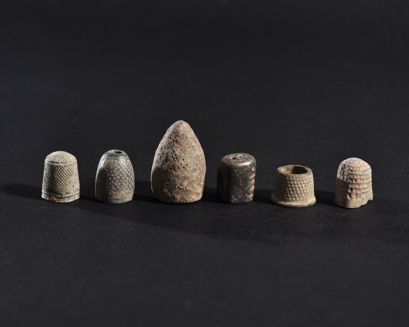 ARQUEOLOGÍA. ROMA, EDAD MEDIA Y EDAD MODERNA. Lote de 6 dedales (ss. I-XVII). Bronce. Altura de 1,4 a 3,4 cm.