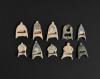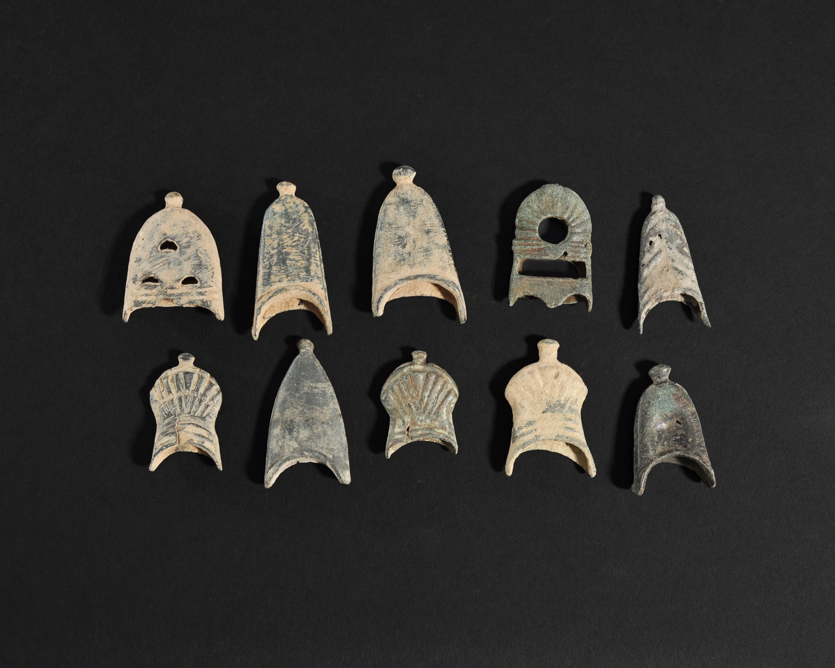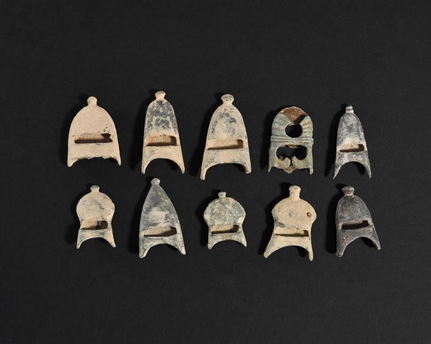 ARQUEOLOGÍA. EDAD MEDIA. Lote de 10 conteras de vaina (ss. XIII-XV). Bronce. Longitud de 3 a 4,7 cm.