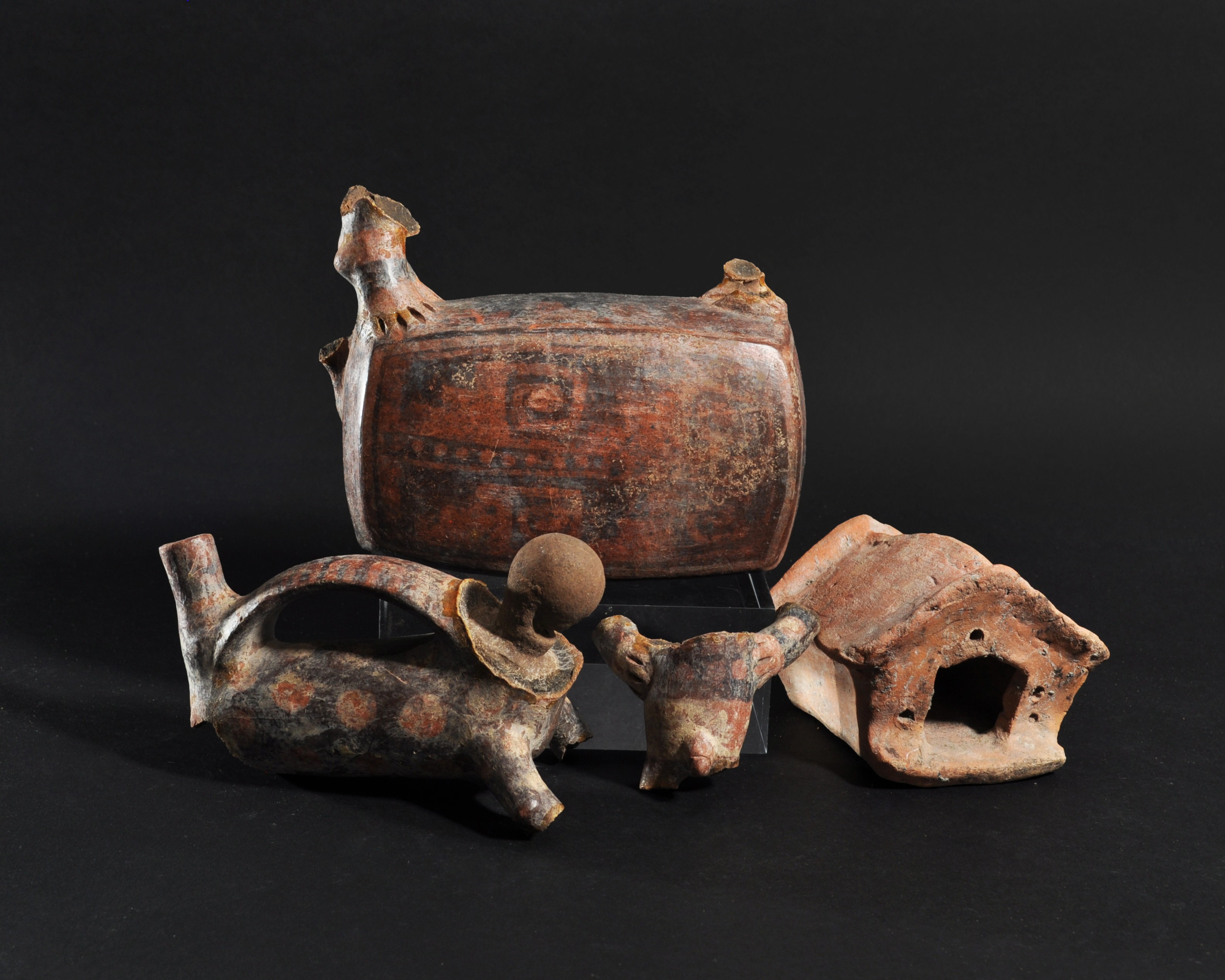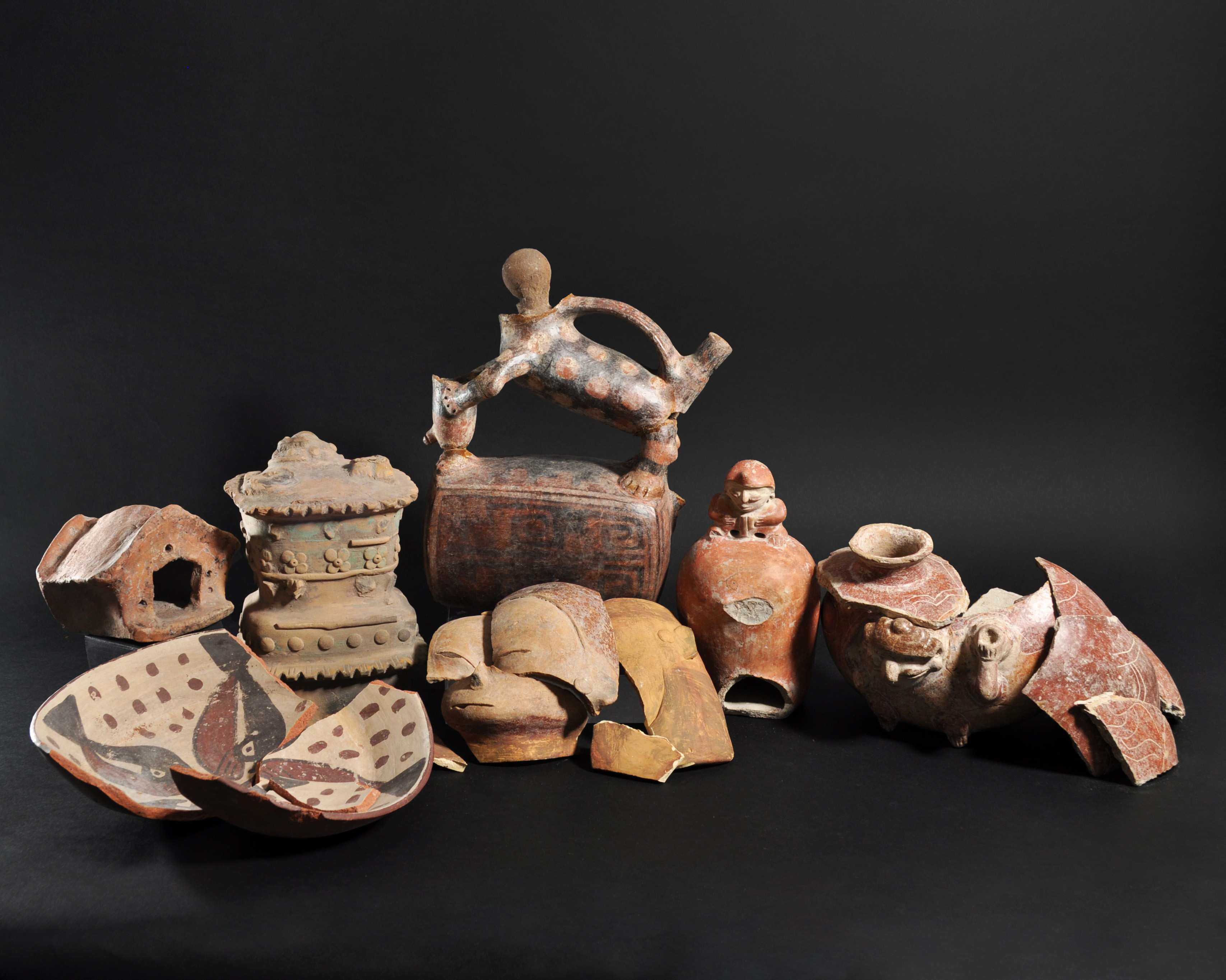 ARQUEOLOGÍA. PREHISPÁNICO. Diferentes épocas y culturas. Lote de 7 piezas fragmentadas. Cerámica. Longitud de 7 a 18,5 cm.