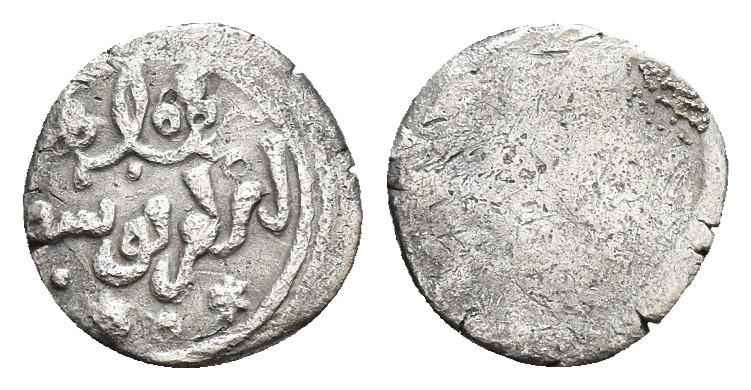 ACUÑACIONES HISPANO-ÁRABES. ALMORÁVIDES. Yusuf b. Tasfin. S.C. 1/2 quirate. S.F. Escritura nasjí anterior. Al-Amir Yusuf. AR 0,46 g. 9 mm. V-no; B-no. Inédita. Ligeramente descentrada. BC+.