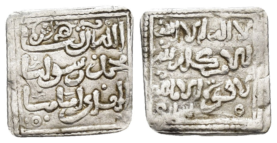 ACUÑACIONES HISPANO-ÁRABES. ALMOHADES. Emisiones anónimas. Silbes. Dírhem. AR 1,55 g. 14 X 14 mm. V-; Ho-514. MBC-.