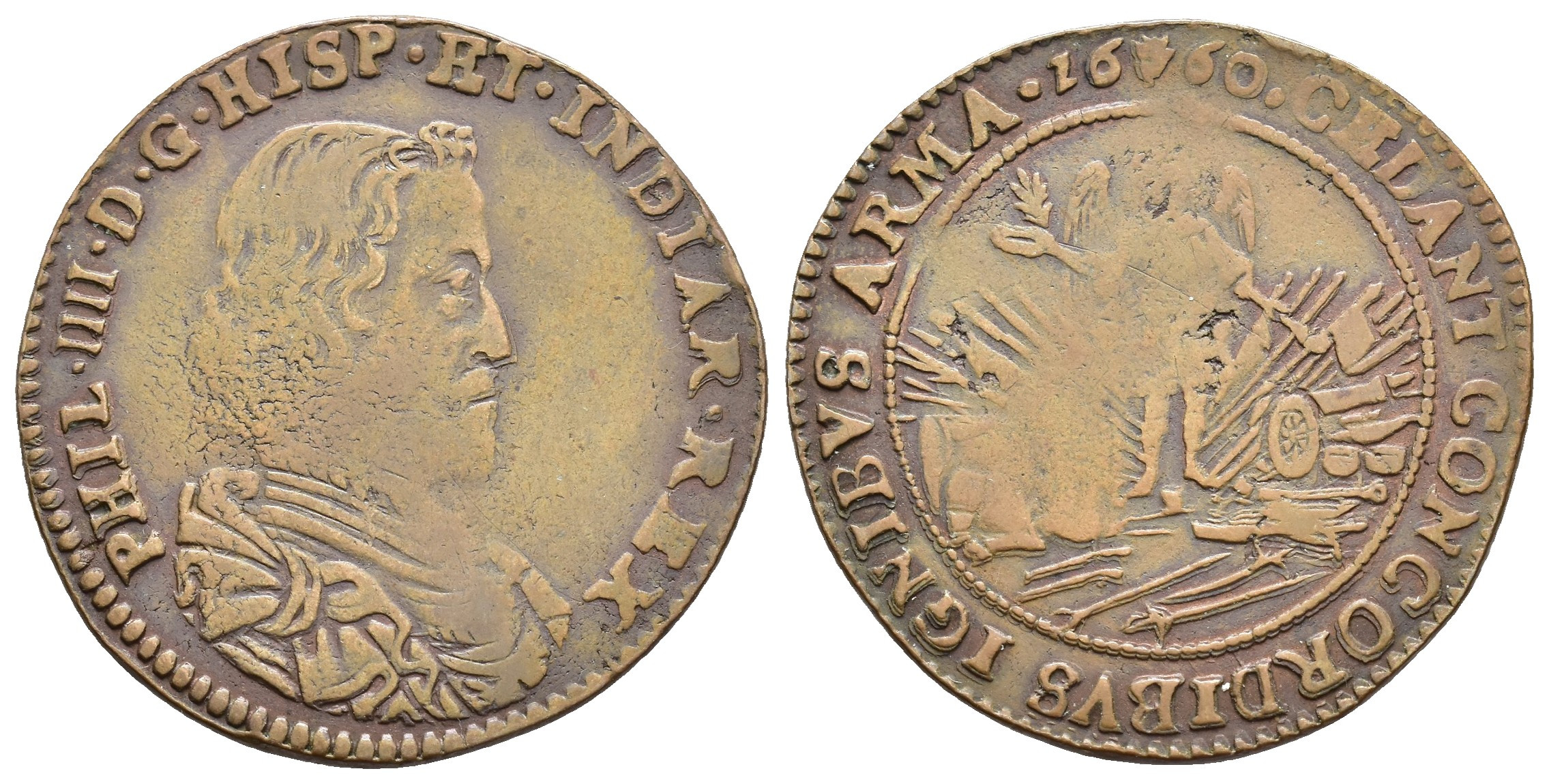 FELIPE IV (1621-1665). Jetón. Amberes. 1660. Paz de los Pirineos. CU 6,07 g. 30,9 mm. Dugniolle-4160. MBC-.