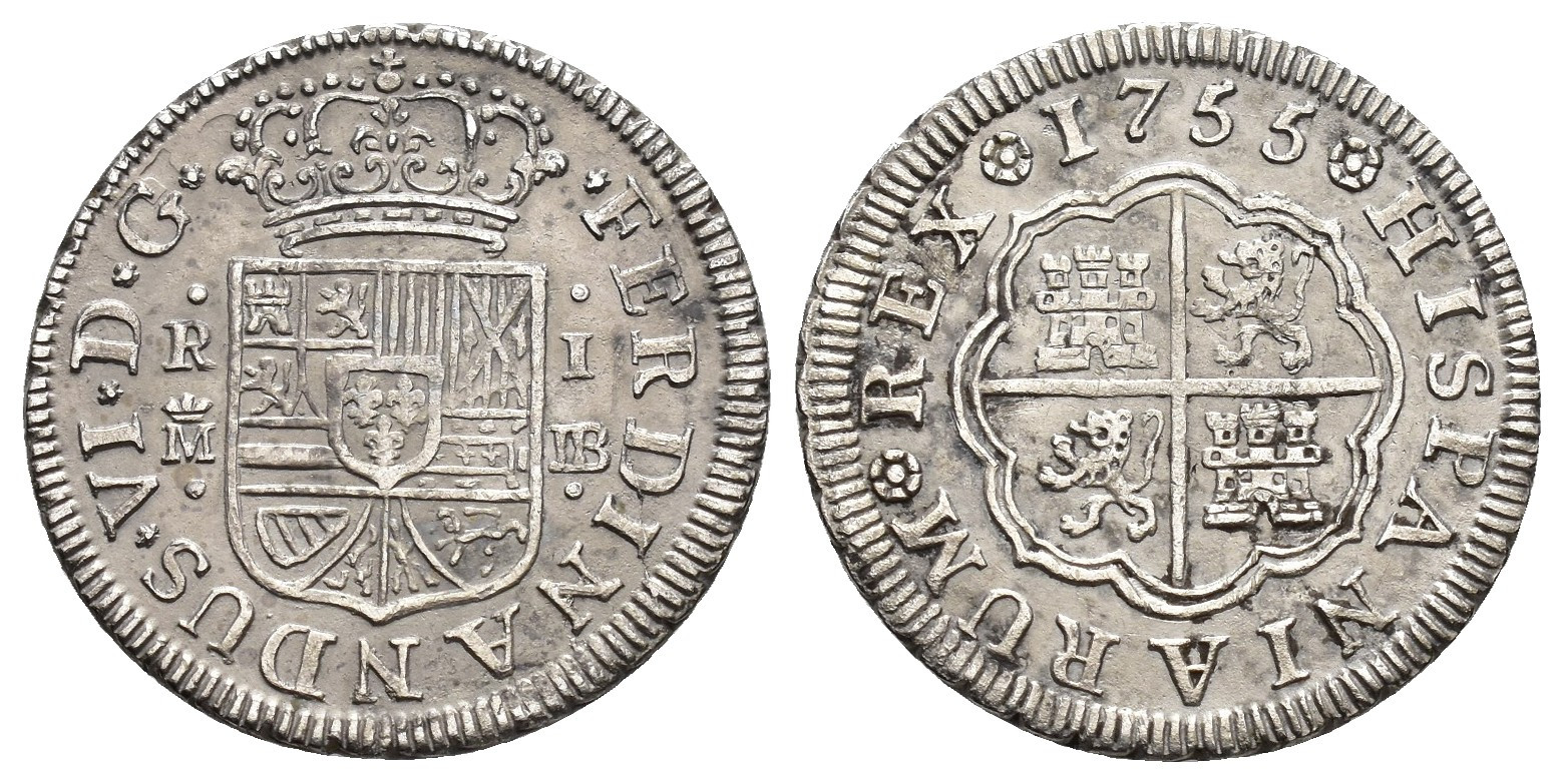FERNANDO VI (1746-1759). Madrid. Real. 1755. JB. AR 2,89 g. 20,7 mm. VI-141; AC-179. MBC+.