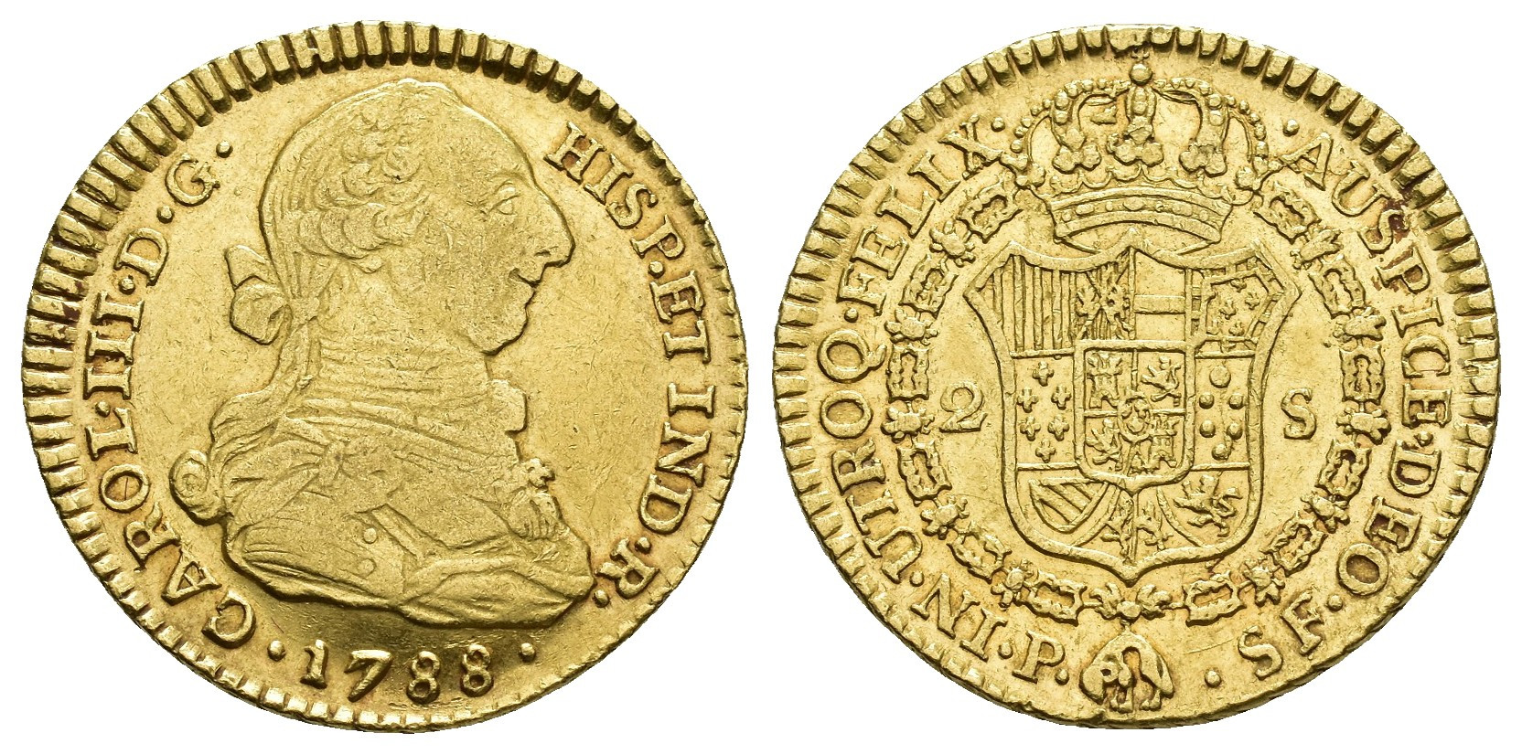 CARLOS III (1759-1788). Popayán. 2 escudos. 1788. SF. AU 6,73 g. 21,6 mm. VI-1388; AC-1653. MBC/MBC+.