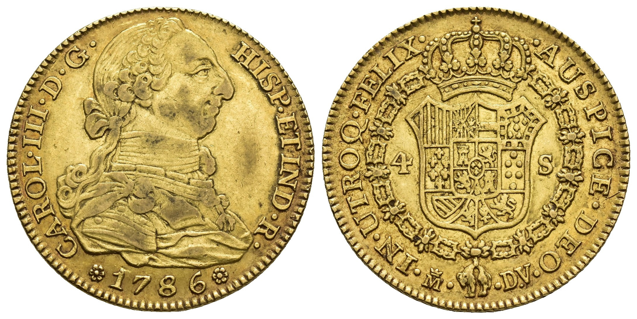 CARLOS III (1759-1788). Madrid. 4 escudos. 1786. AU 13,41 g. 29,2 mm. VI-1470; AC-1791. Rayita en rev. MBC.