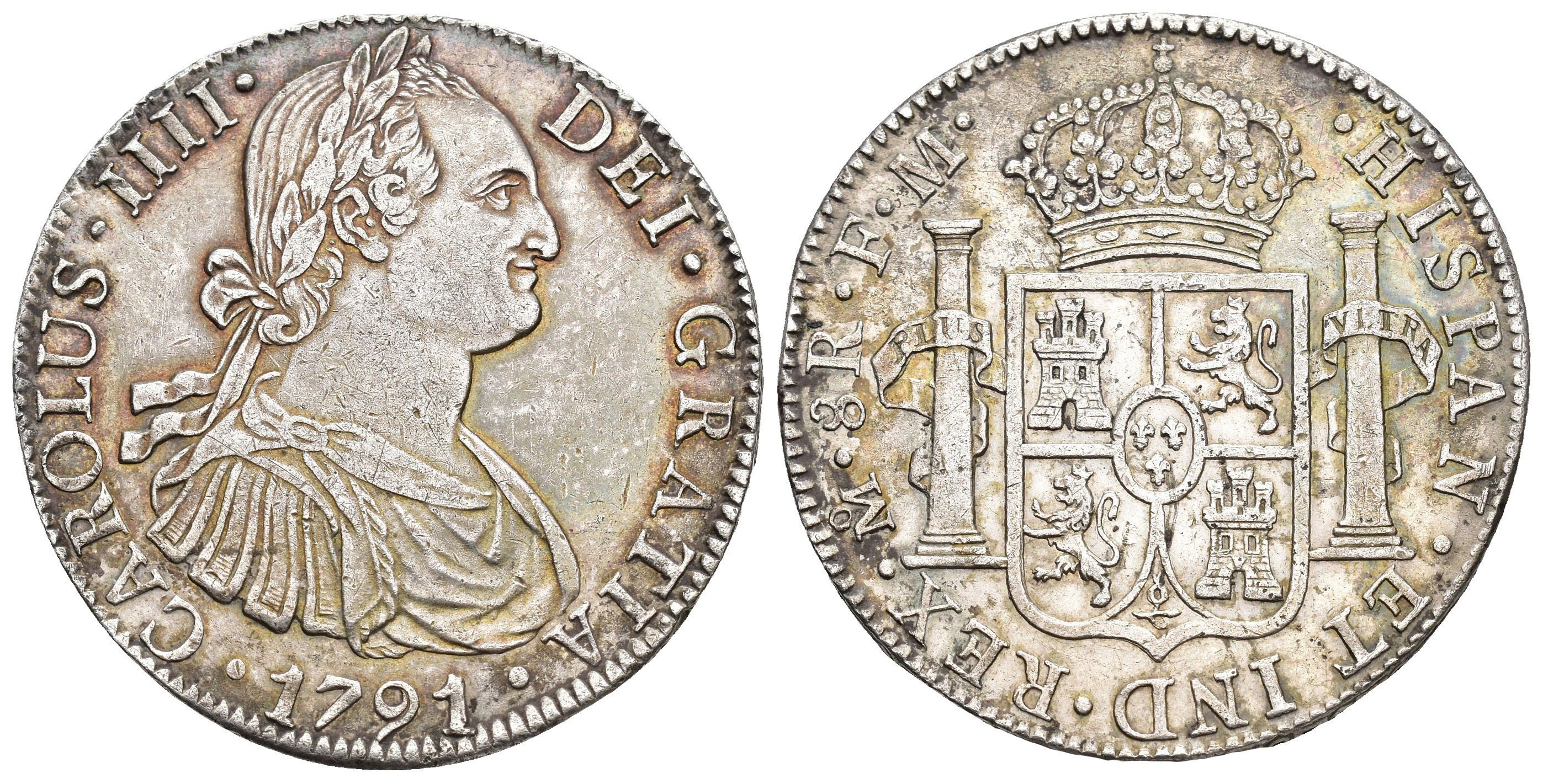 CARLOS IV (1788-1808). México. 8 reales. 1792. FM. AR 26,82 g. 38,4 mm. VI-787; AC-953. Golpecitos. Ligera pátina. MBC+.