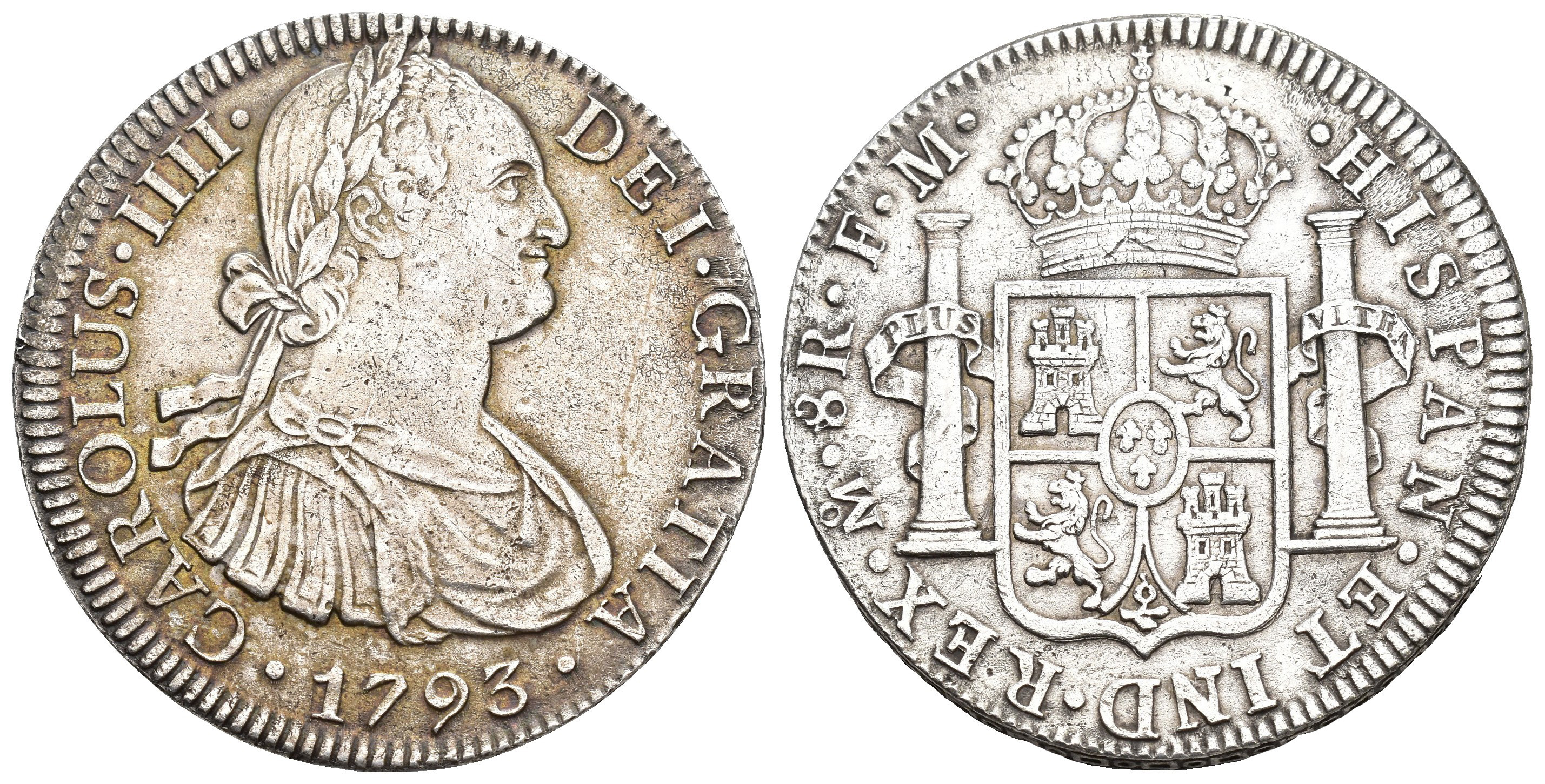CARLOS IV (1788-1808). México. 8 reales. 1793. FM. AR 26,6 g. 39,2 mm. VI-789; AC-955. Marquitas. Ligera plata agria. MBC+.