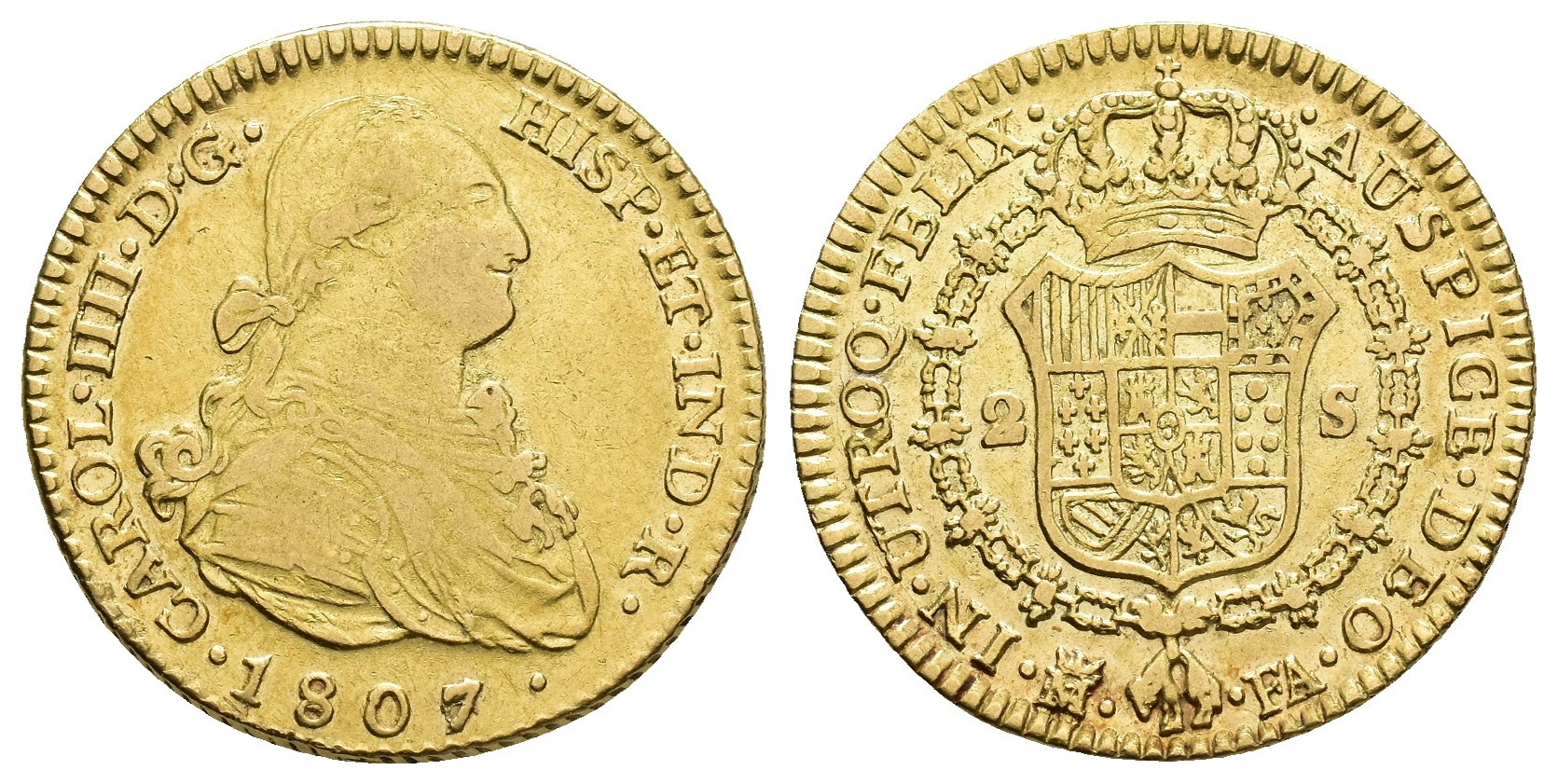 CARLOS IV (1788-1808). Madrid. 2 escudos. 1807/6. FA. AU 6,76 g. 22,3 mm. VI-1058 vte.; AC-1315. Marquitas. MBC-.