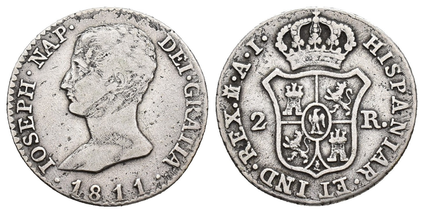 JOSÉ I BONAPARTE (1808-1813). Madrid. 2 reales. 1811. AI. AR 2,76 g. 19,3 mm. VI-8; AC-9. BC+.