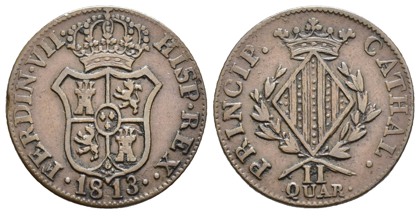 FERNANDO VII (1808-1833). Cataluña. 2 cuartos. 1813. CU 4,91 g. 23,6 mm. VI-4; AC-7. MBC.