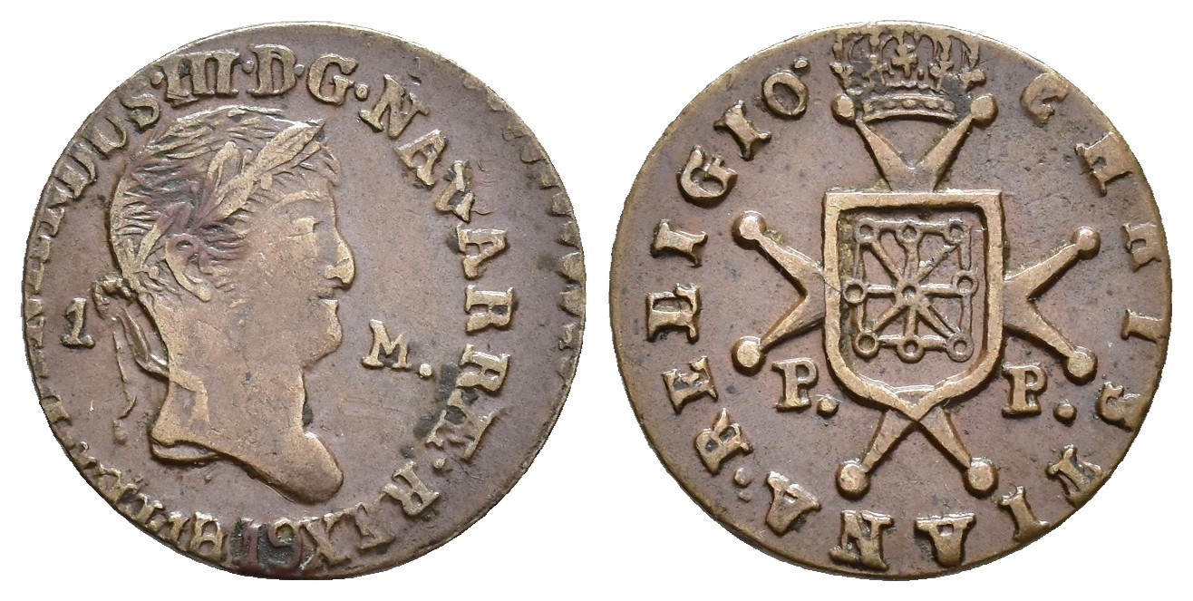 FERNANDO VII (1808-1833). Pamplona. Maravedí. 1819. P.P. FERDINANDUS. CU 2,36 g. 17,3 mm. VI-107; AC-34. Ligeramente descentrada. MBC+.