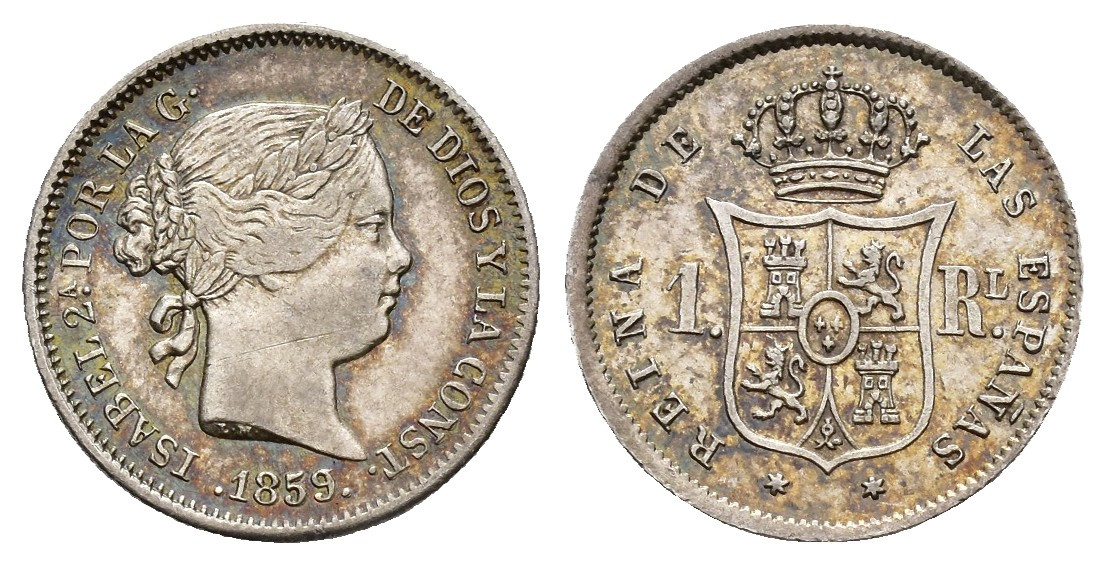 ISABEL II (1833-1868). Real. 1859. Madrid. AR 1,27 g. 14,5 mm. VI-269; AC-308. EBC-.