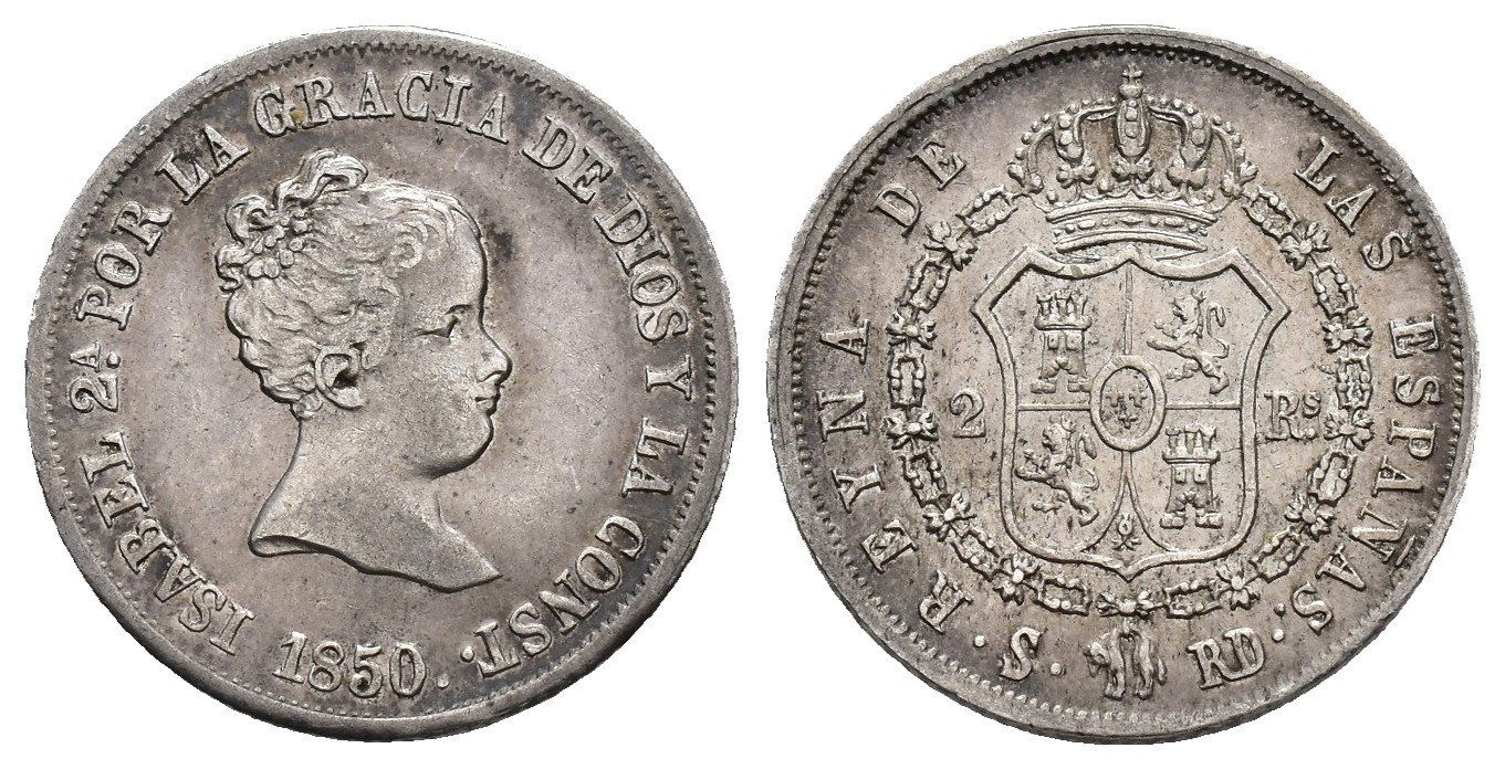 ISABEL II (1833-1868). Sevilla. 2 reales. 1850/45. AR 2,38 g. 18,2 mm. VI-333 vte.; AC-385. MBC/MBC+.