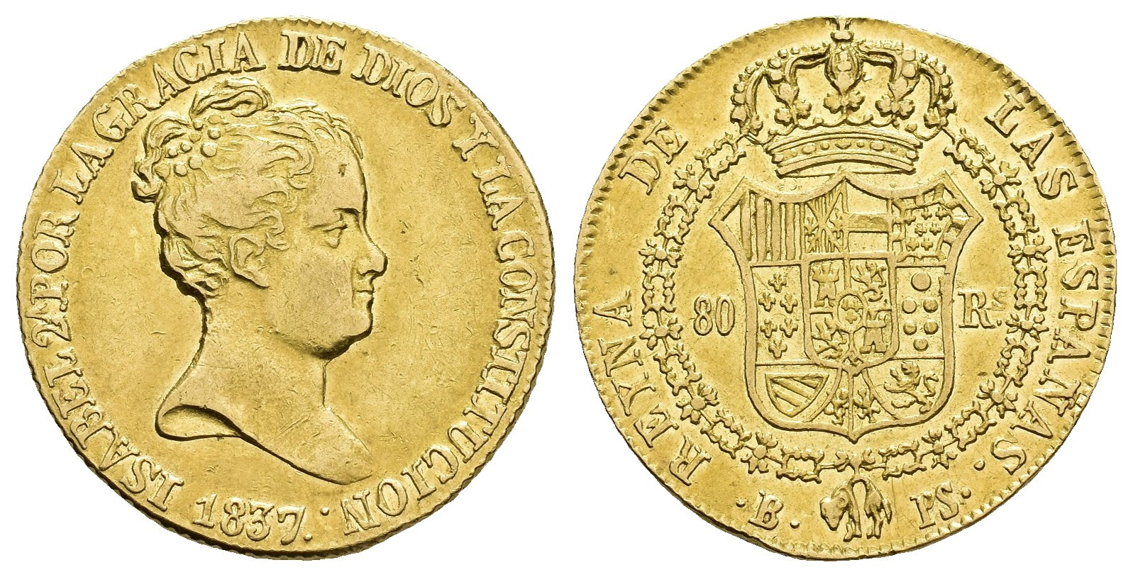 ISABEL II (1833-1868). Barcelona. 80 reales. 1867. AU 6,72 g. 21,7 mm. VI-577; AC-700. MBC.
