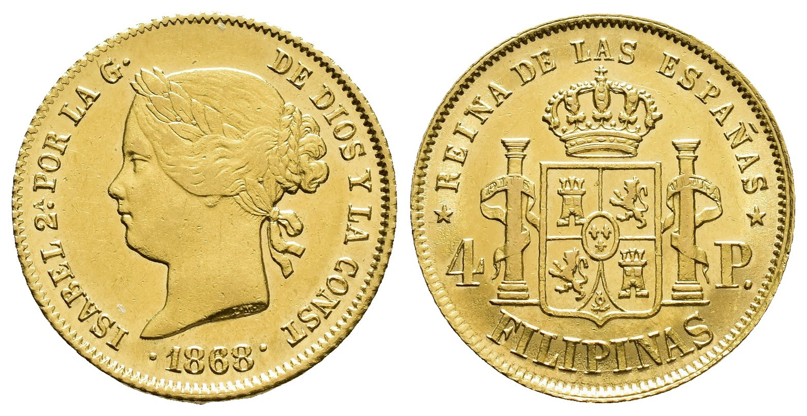 ISABEL II (1833-1868). Manila. 4 pesos. 1868. AU 6,8 g. 21,1 mm. VI-693; AC-865. R.B.O. MBC+/EBC-.