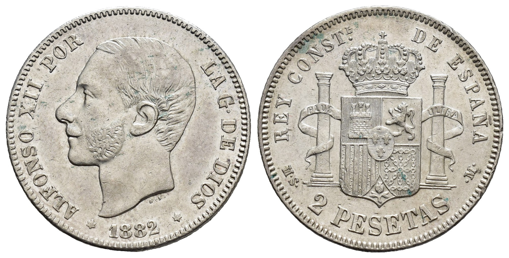 ALFONSO XII. 2 pesetas. 1882*1-82. Madrid. MSM. AR 9,96 g. 27,1 mm. VII-72; AC-32. R.B.O. EBC-.
