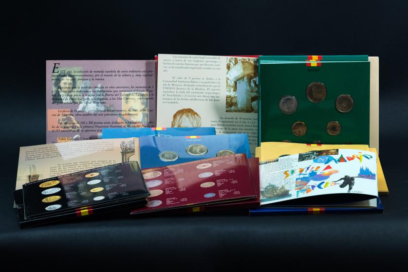 JUAN CARLOS I (1975-2014). Colección de monedas españolas de curso legal. Lote de 8 blísters de 1992 a 1999. SC.