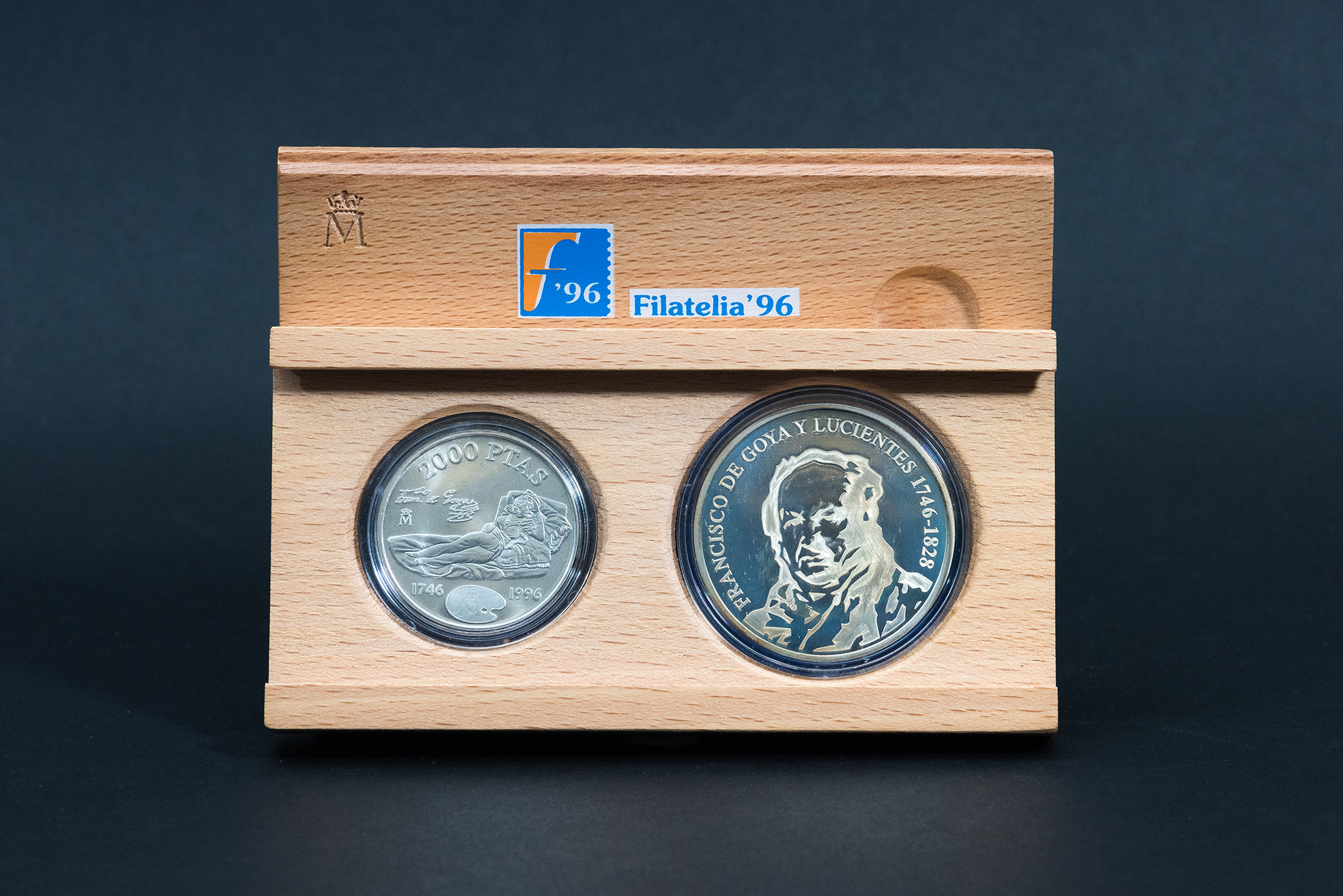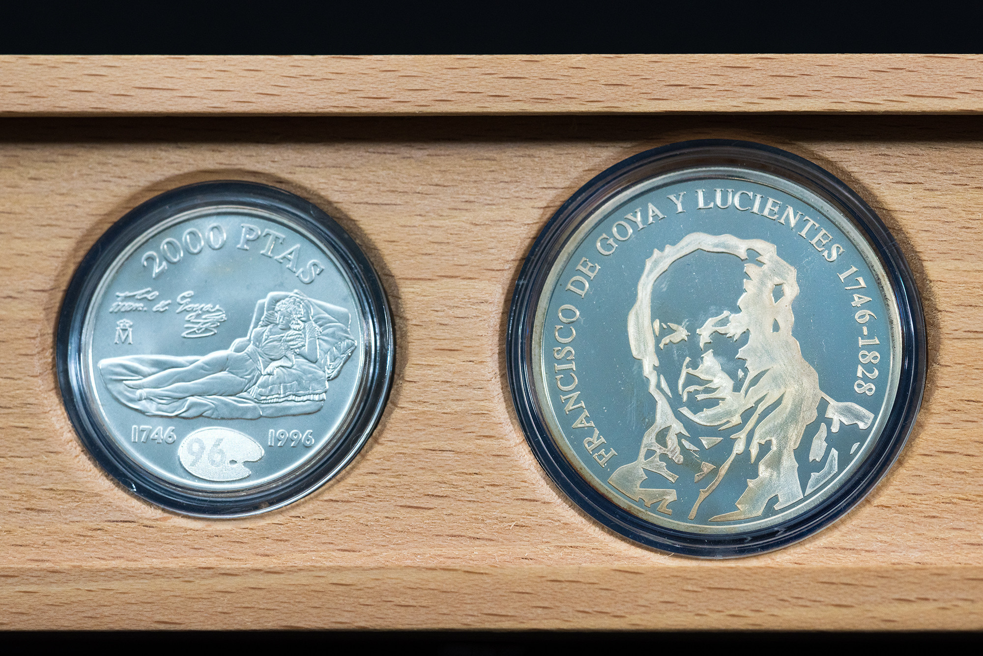 JUAN CARLOS I (1975-2014). Estuche con 2000 pts. 1996, Maja de Goya y medalla conmemorativa de CCL Aniversario del nacimiento de Goya, 1996.