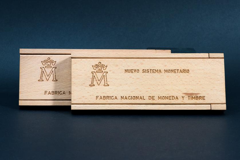 JUAN CARLOS I (1975-2014). Lote de 2 estuches FNMT. Nuevo sistema monetario. 1990. 10 piezas en cada uno, total 20 piezas. En su caja de madera.