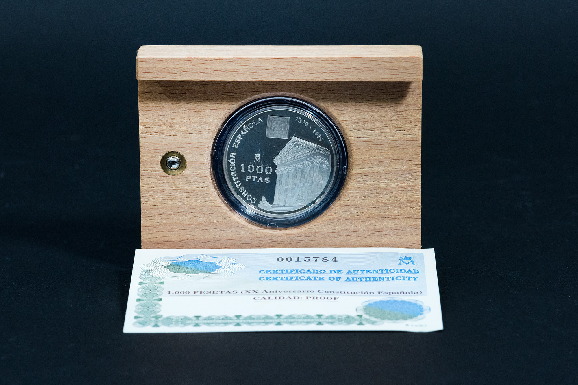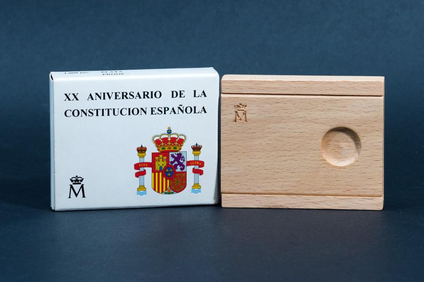 JUAN CARLOS I (1975-2014). 1000 pts. XX Aniversario Constitución Española. 1998. AR 13,5 g. 33 mm. En su estuche y con certificado. Proof.
