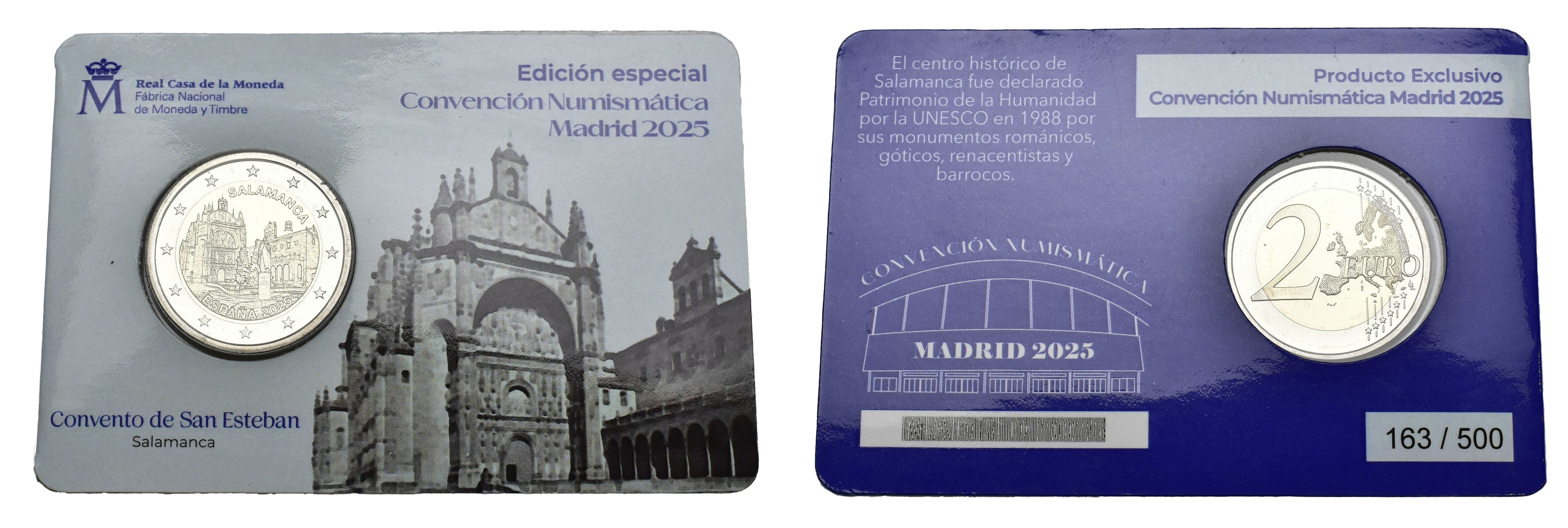 FELIPE VI (2014). 2 euros conmemorativos. FNMT. 2025. Convento de San Esteban, Salamanca. Edición especial de la Convención Numismática Madrid 2015. Blíster. 170/500 piezas. SC.