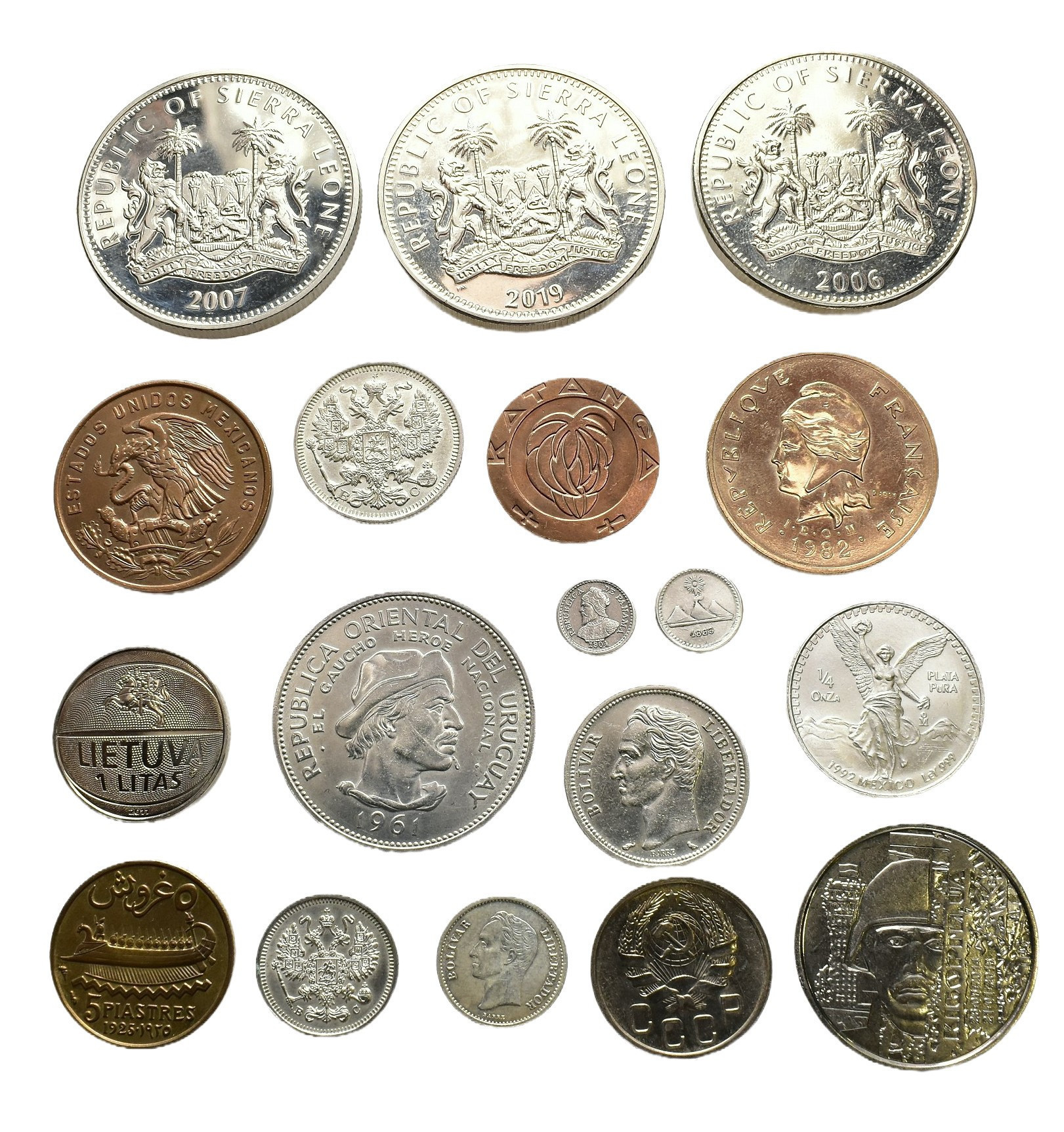 MONEDA EXTRANJERA. Lote de 18 piezas diferentes de varios países. De EBC a Prueba.