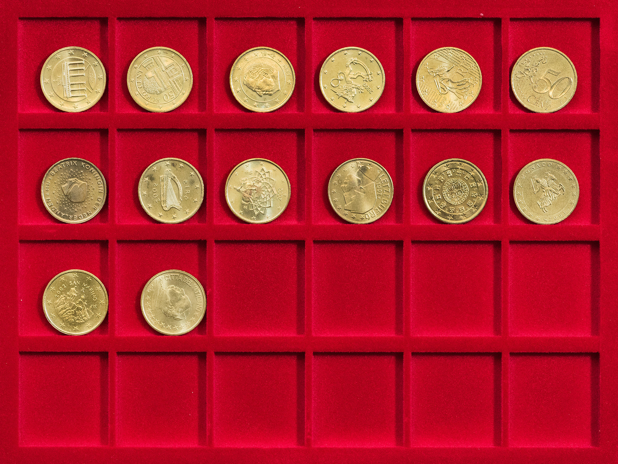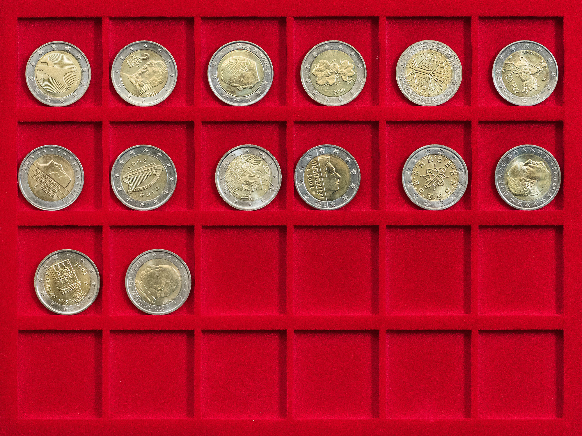 MONEDA EXTRANJERA. Colección de 14 series del sistema del euro de distintos países, destacando Vaticano 2002, Mónaco 2001 y San Marino 2002. SC.