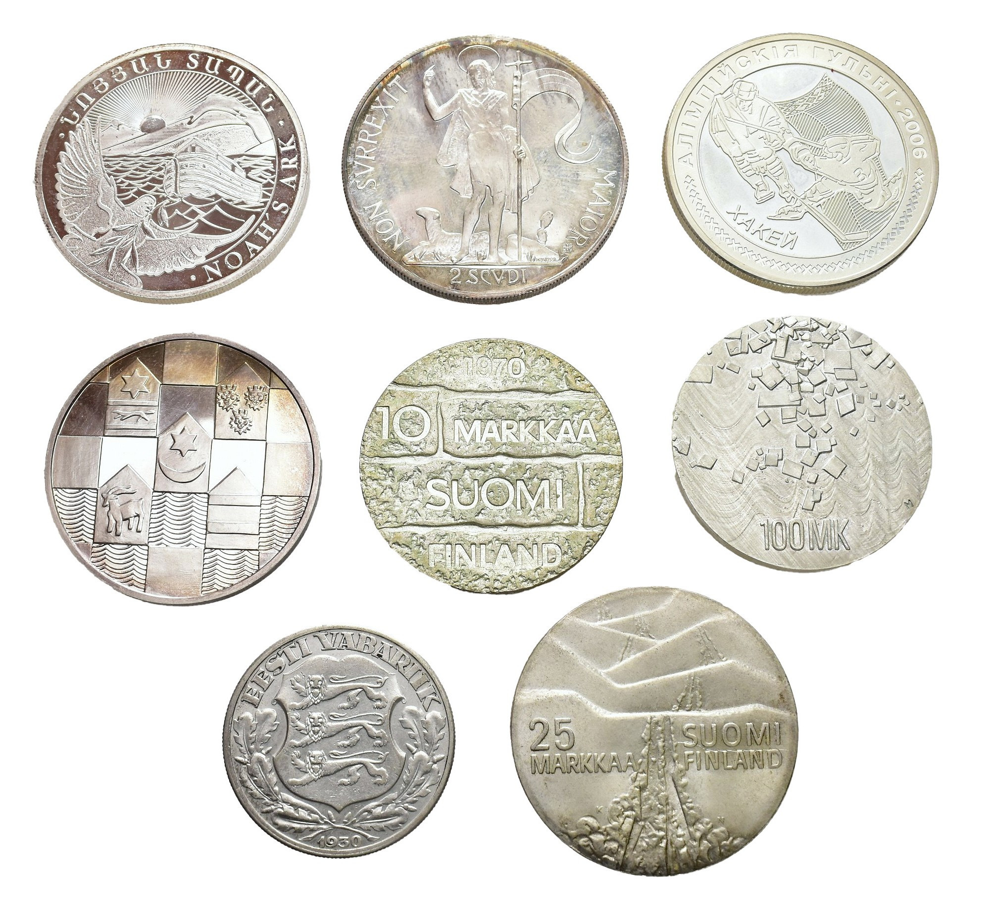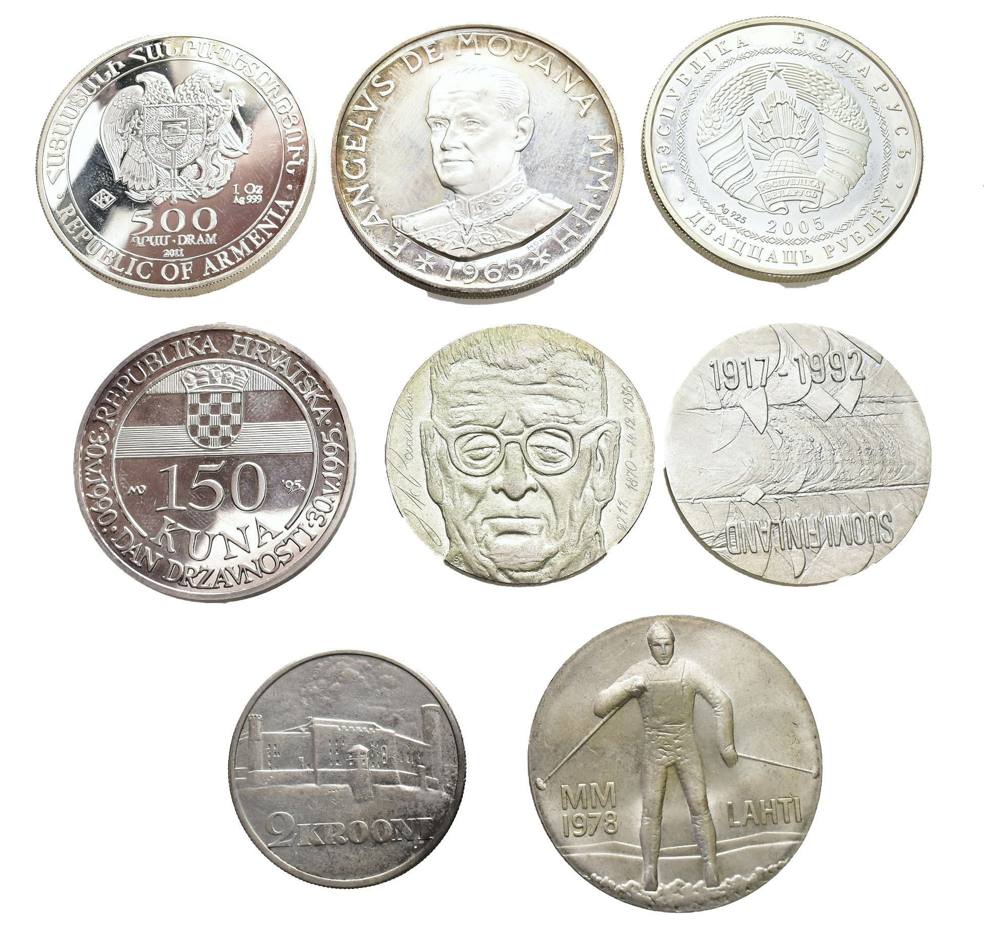 MONEDA EXTRANJERA. Lote de 8 pieza de plata: Armenia, Orden de Malta, Bielorrusia, Croacia, Finlandia (3) y Estonia. SC y Prueba.
