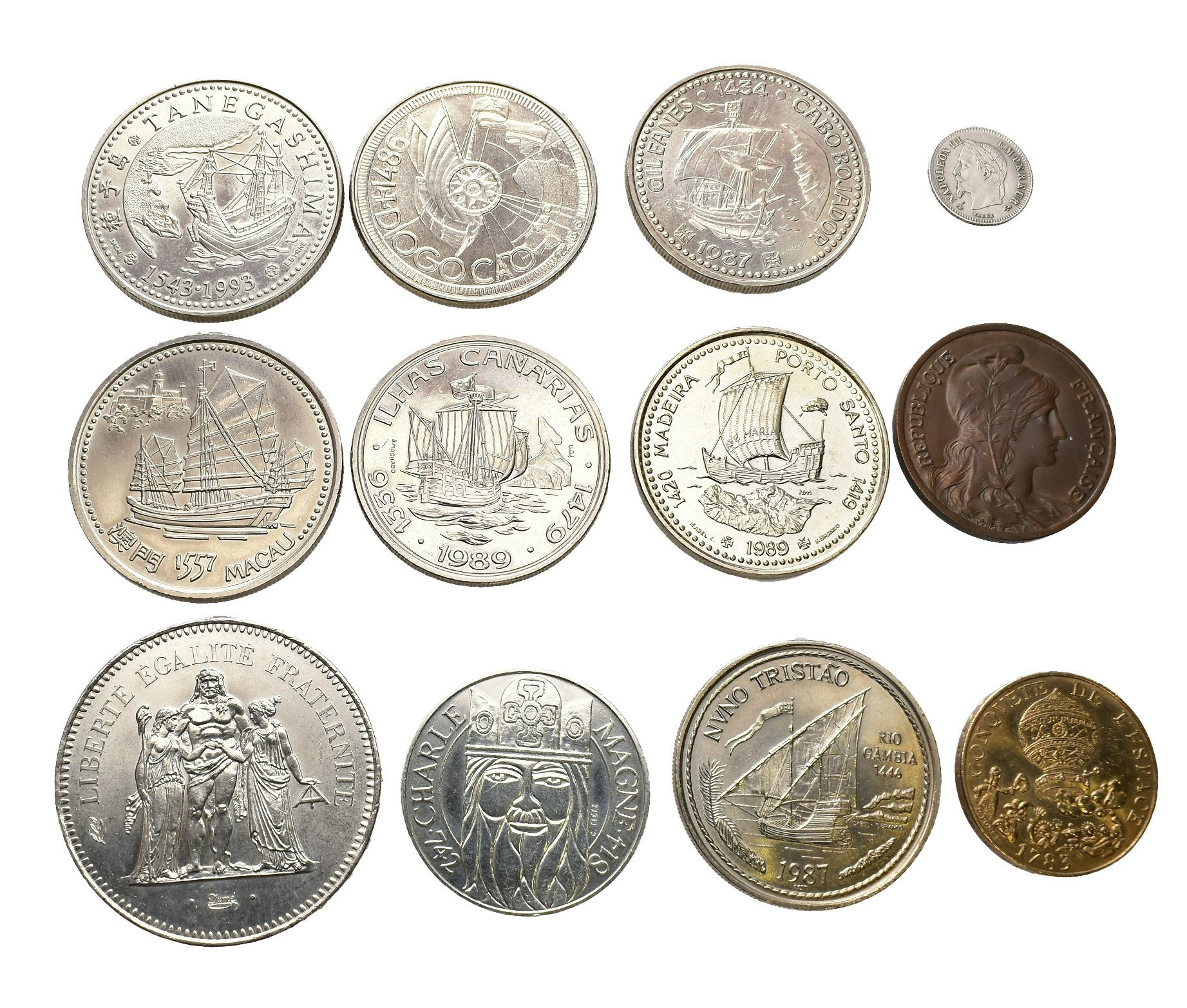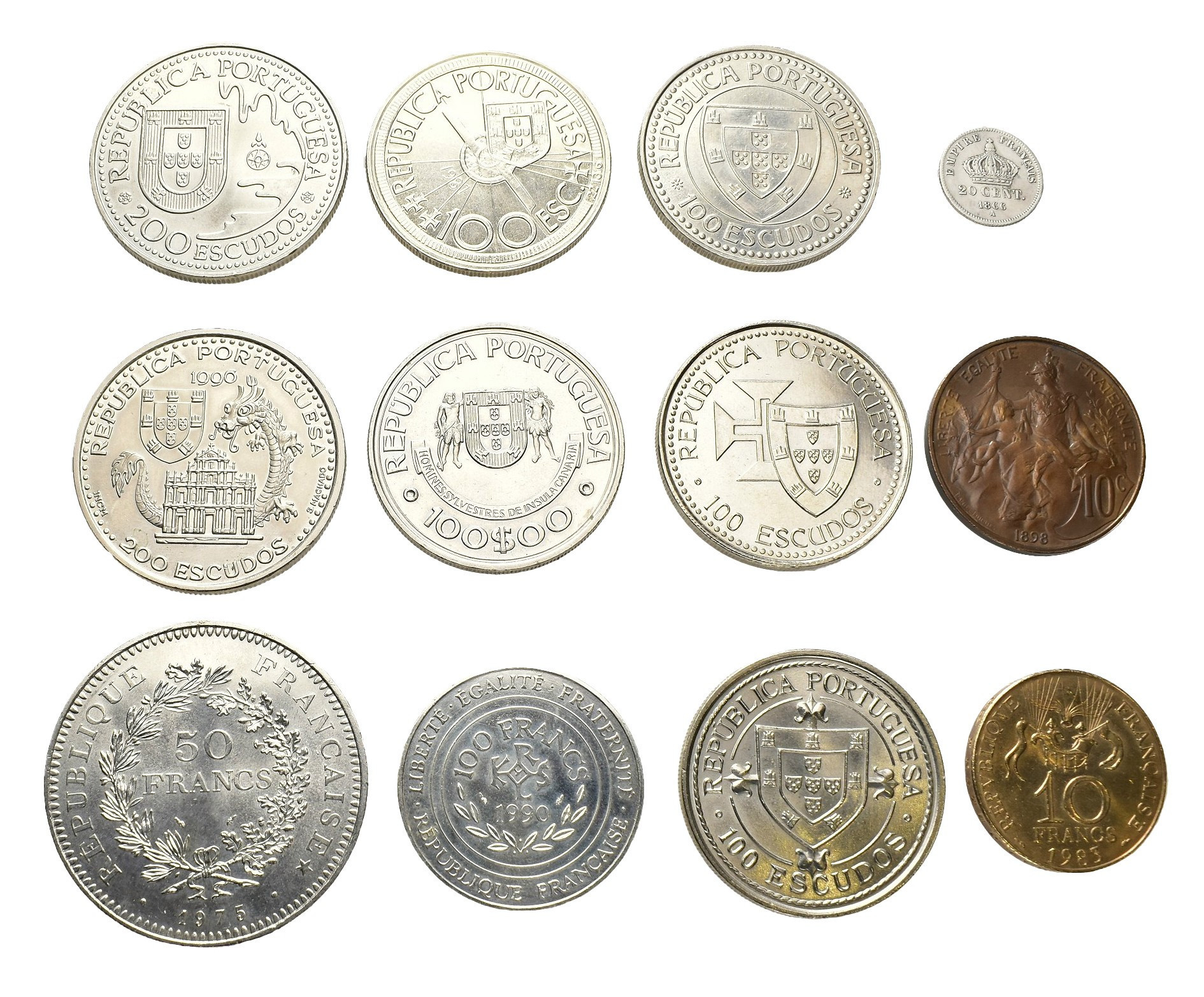 MONEDA EXTRANJERA. Lote de 12 piezas: Francia (5) y Portugal (7). SC.