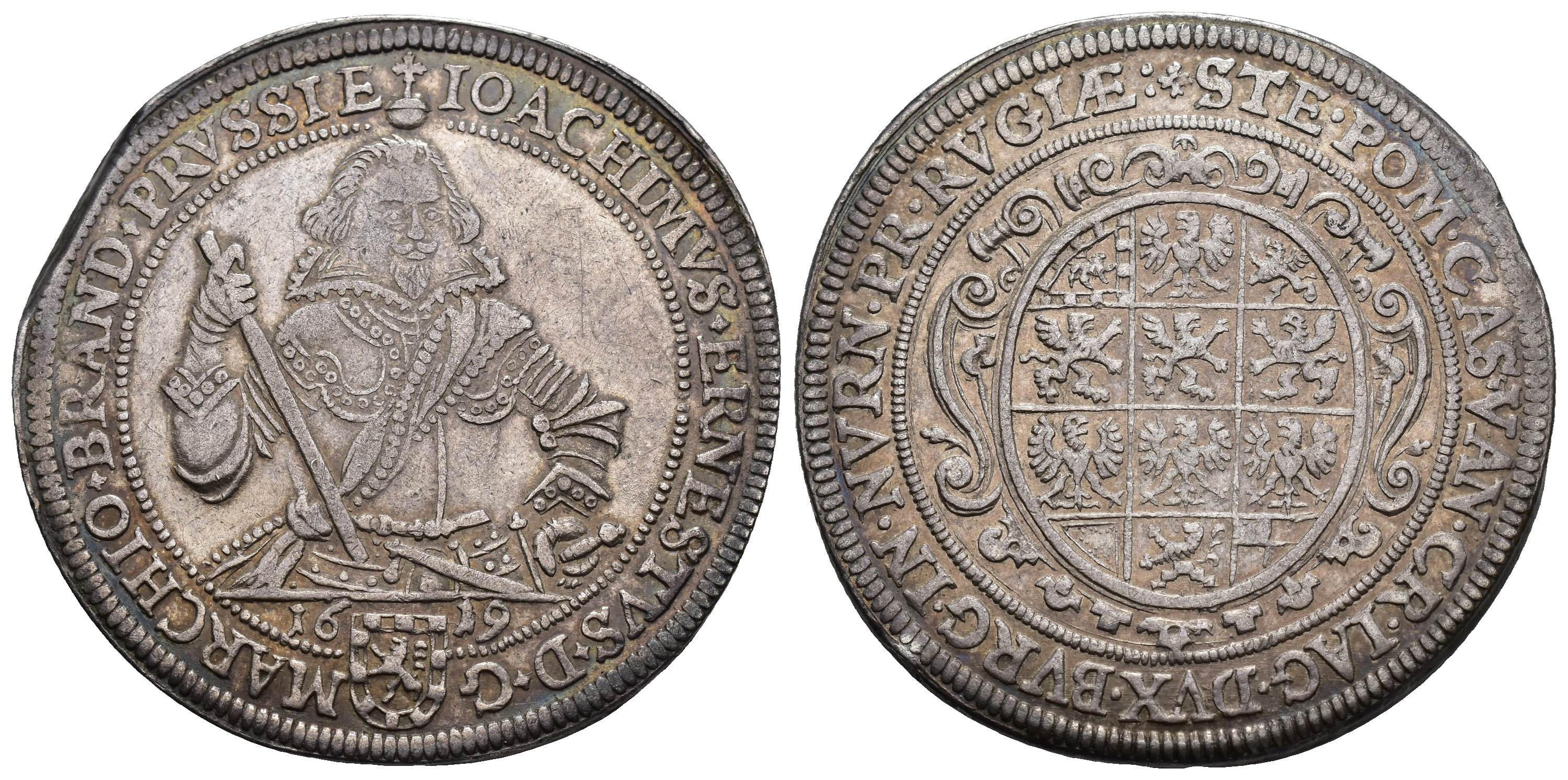 MONEDA EXTRANJERA. ALEMANIA Y ESTADOS ALEMANES. BRANDEBURGO-ANSBACH. Joaquín Ernesto. Tálero. 1619. AR 28,47 g. 40,5 mm. Dav.-6226. Final de plancha. MBC+.
