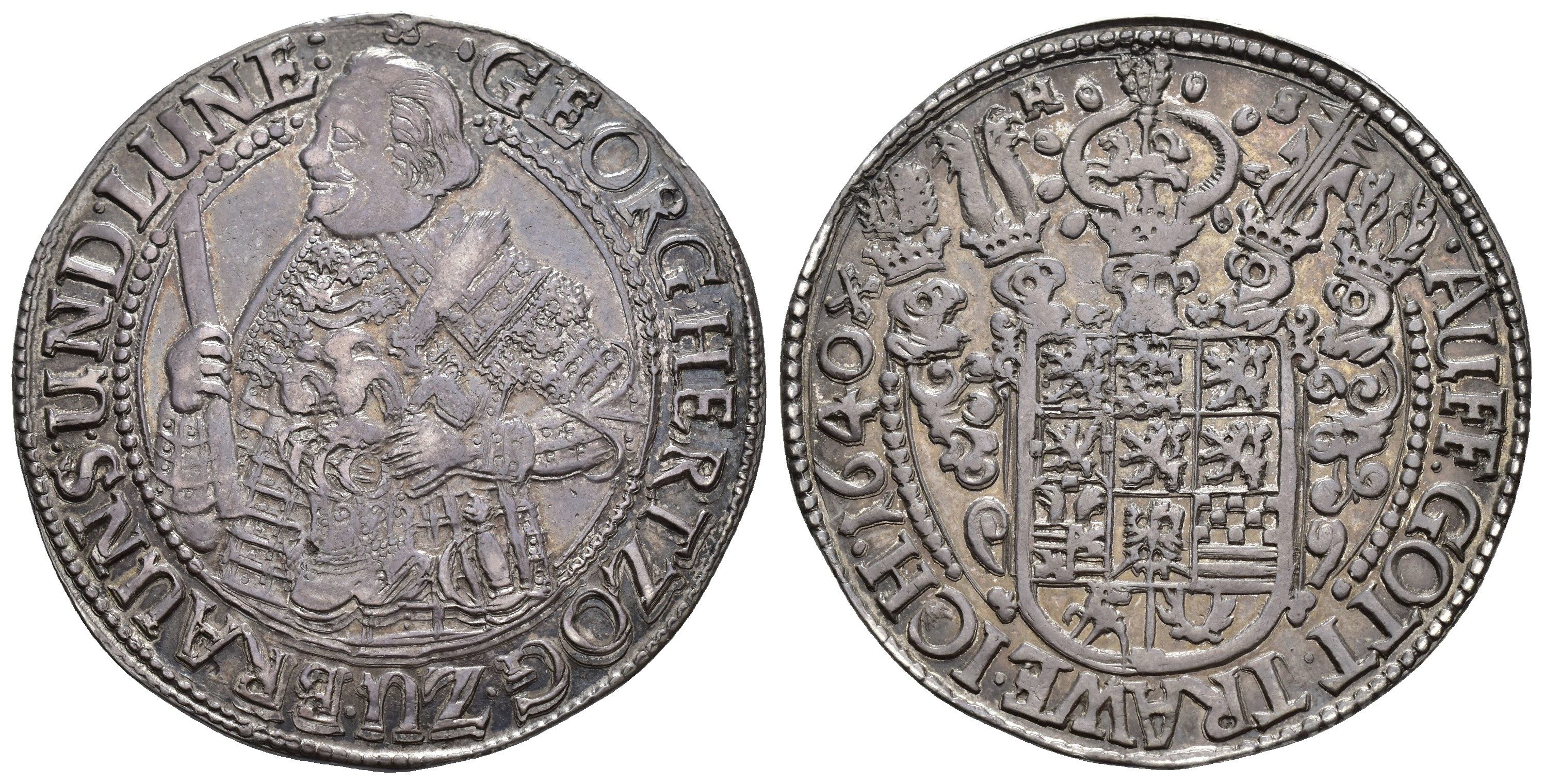 MONEDA EXTRANJERA. ALEMANIA Y ESTADOS ALEMANES. BRUNSWICK-CALENBERG-HANNOVER. Jorge Guillermo I. Tálero. 1639. HS. AR 29 g. 41,1 mm. Dav.-6505. MBC+.
