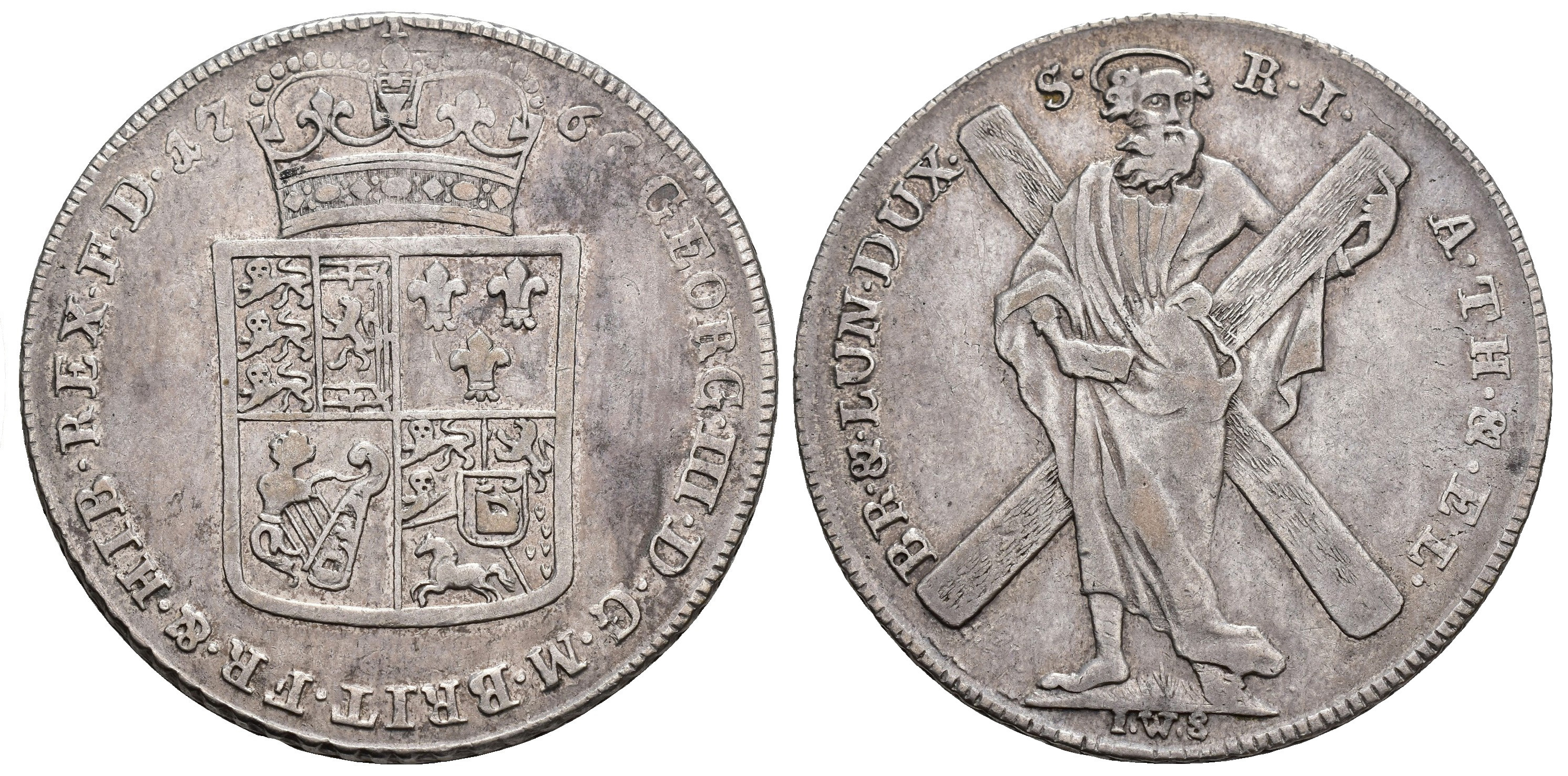 MONEDA EXTRANJERA. ALEMANIA Y ESTADOS ALEMANES. BRUNSWICK-CALENBERG-HANNOVER. Jorge III. Tálero. 1766. IWS. AR 28,99 g. 40 mm. Dav.-2104. MBC.