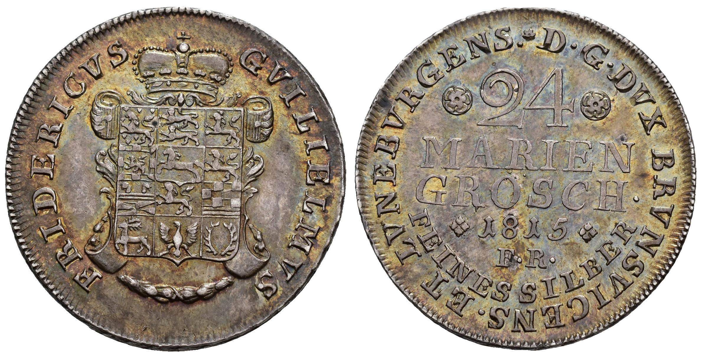 MONEDA EXTRANJERA. ALEMANIA Y ESTADOS ALEMANES. BRUNSWICK-CALENBERG-HANNOVER. Guillermo Federico. 24 groschen. 1815. FR. AR 13,04 g. 32,6 mm. KM-1060; Welter-2940. Bonita pátina. EBC+.