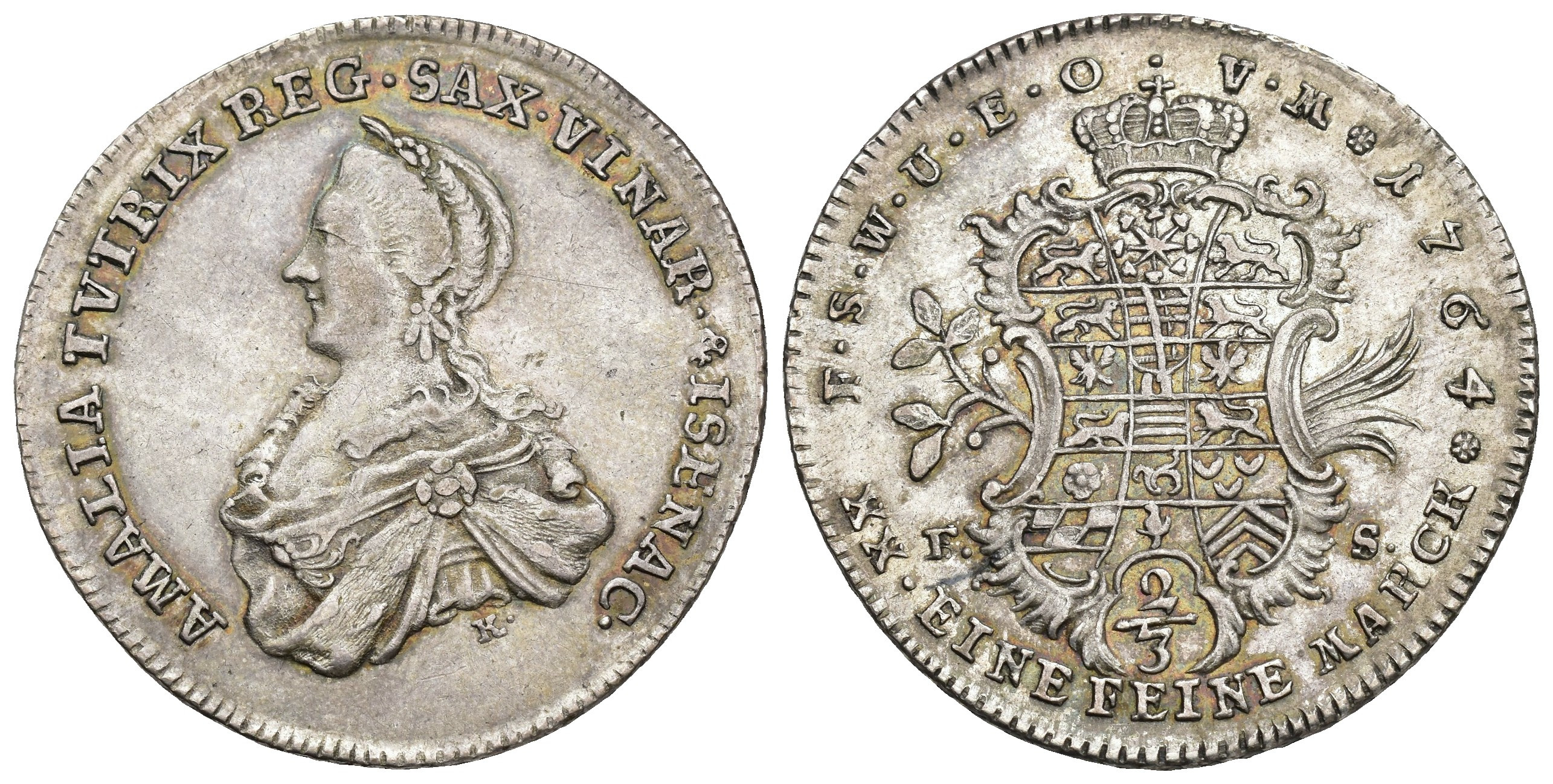 MONEDA EXTRANJERA. ALEMANIA Y ESTADOS ALEMANES. SAJONIA-WEIMAR-EISENACH. Ana Amalia. 2/3 tálero. 1764. FS. AR 13,97 g. 35,1 mm. KM-46a. EBC-.