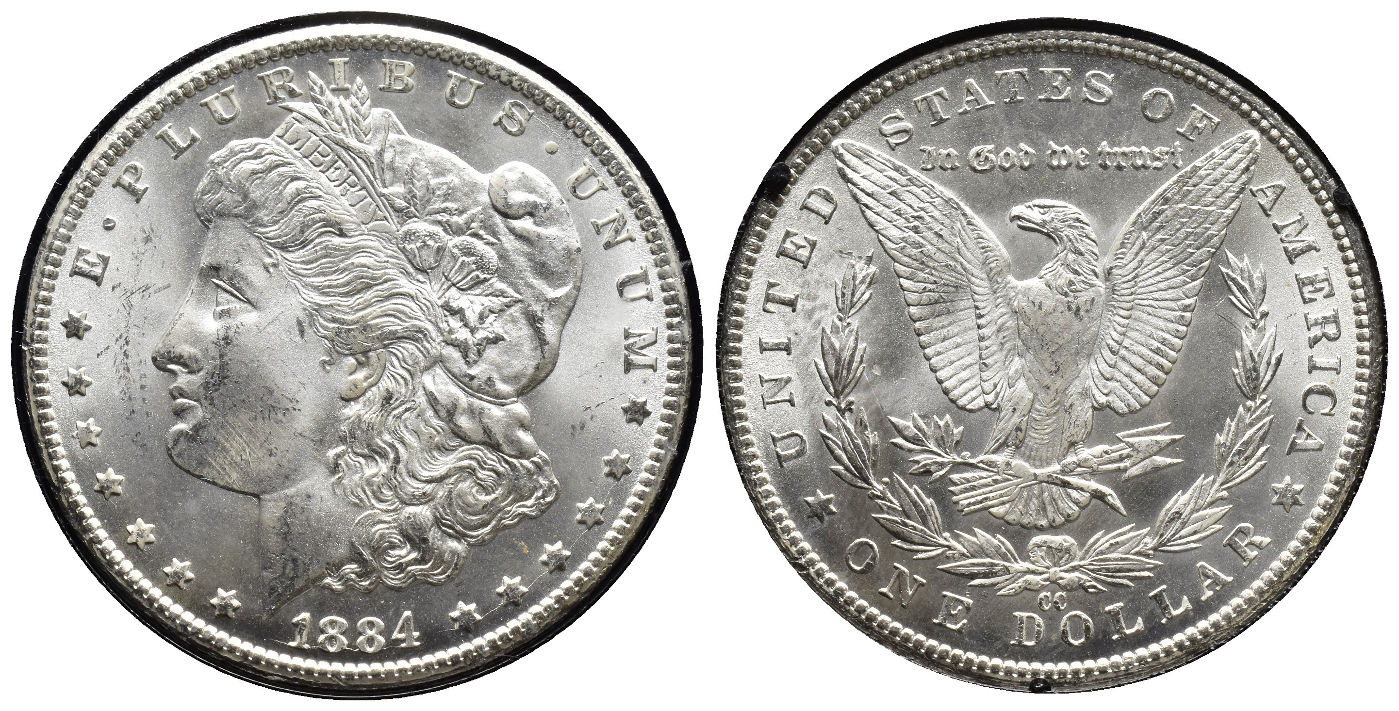 MONEDA EXTRANJERA. ESTADOS UNIDOS DE AMÉRICA. 1 dólar 1884-CC. En caja y con certificado de NGC-MS 64. KM-110. SC.