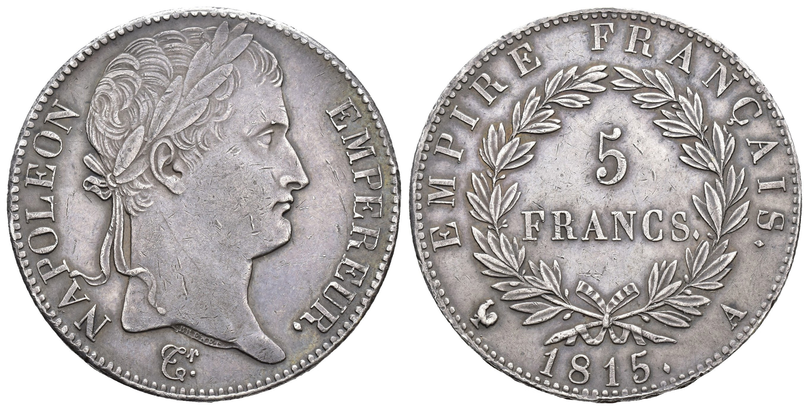 MONEDA EXTRANJERA. FRANCIA. Napoleón Bonaparte. 5 francos. 1815. A. AR 25,04 g. 37,1 mm. KM-704.1. Pequeñas marcas. MBC+.