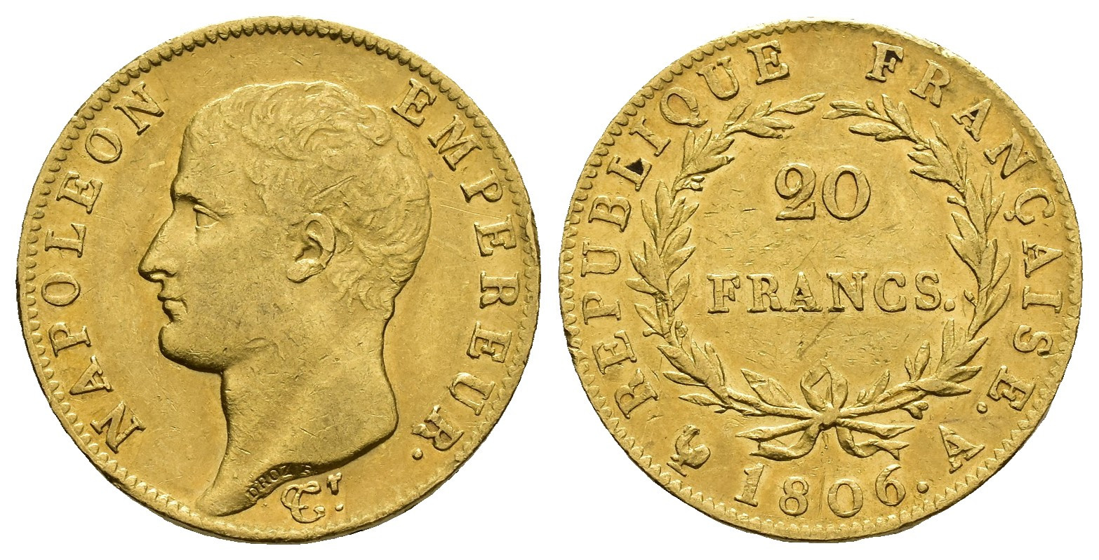 MONEDA EXTRANJERA. FRANCIA. Napoleón. 20 francos. 1806. París. A. AU 6,42 g. 21 mm. KM-674.1. MBC+.